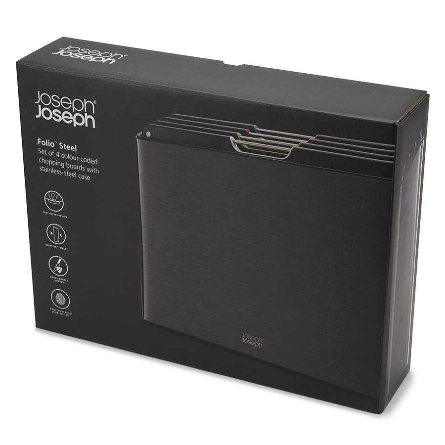 Folio Steel – супер-премиум набор разделочных досок для домашней и профессиональной кухни. Стильный кейс из нержавеющей стали гармонично впишется в любой интерьер кухни.