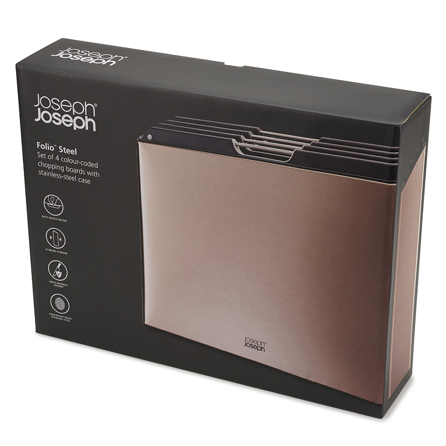 Folio Steel – супер-премиум набор разделочных досок для домашней и профессиональной кухни. Стильный кейс из нержавеющей стали гармонично впишется в любой интерьер кухни.