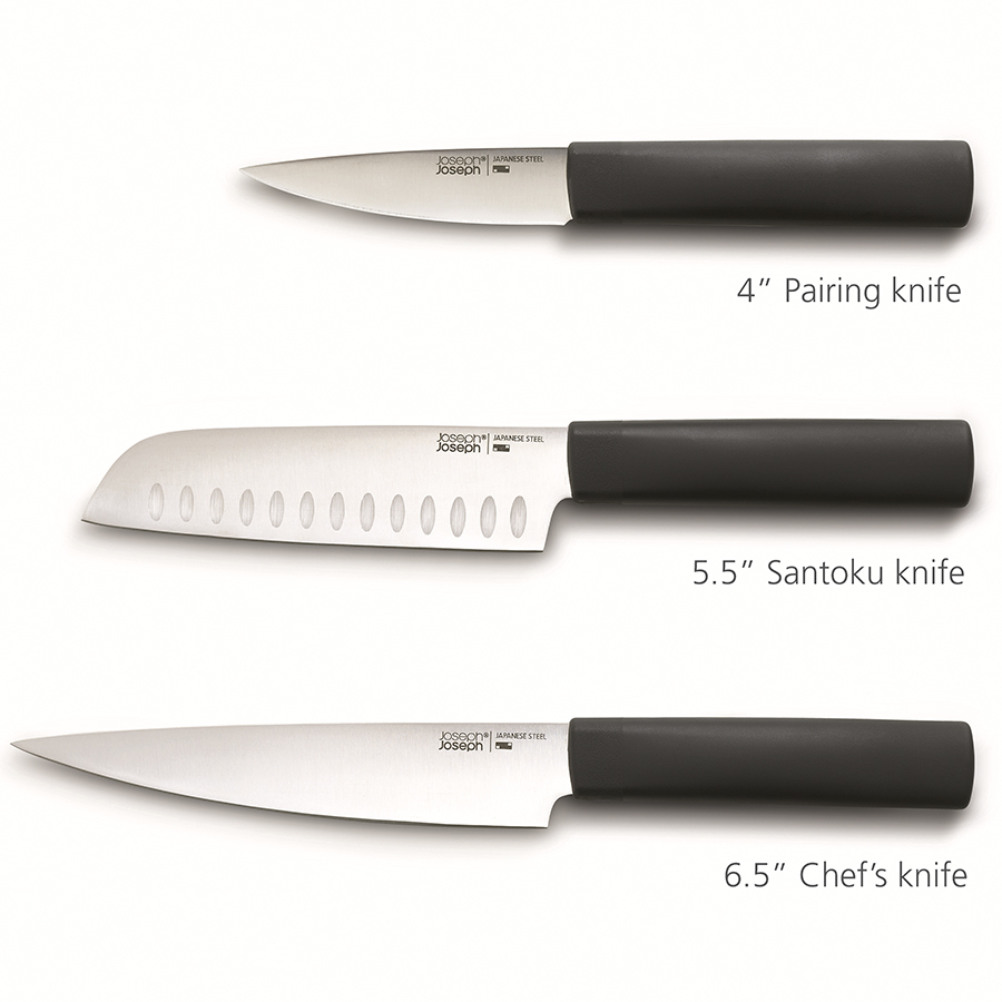 Раземры ножей: шеф-нож 15,5 см, сантоку 14 см, нож для очистки овощей 10 см.