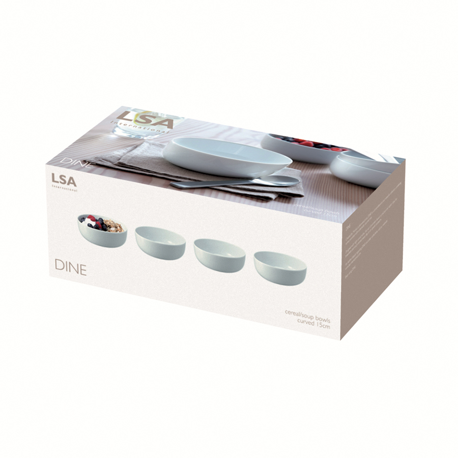 Набор из 4-х глубоких мисок для хлопьев с молоком и супов. Миски выполнены из белоснежного фарфора. Они прекрасно подойдут как для ежедневного использования, так и для торжественных мероприятий. Диаметр 15 см. Набор упакован в красивую коробку и станет отличным подарком на годовщину или юбилей. Комбинируйте их вместе с другими предметами из коллекции Dine для создания закоченной композиции. Dine — коллекция фарфоровой посуды, сочетающей в себе классику и современный дизайн. В линейке представлены тарелки, чашки, блюдца, миски, блюда, заварочные чайники, сахарницы, маслёнки, молочники и другие предметы для изысканной сервировки. Все элементы коллекции можно комбинировать между собой в зависимости от случая. Изделия из фарфора можно использовать в микроволновой печи и мыть в посудомоечной машине.