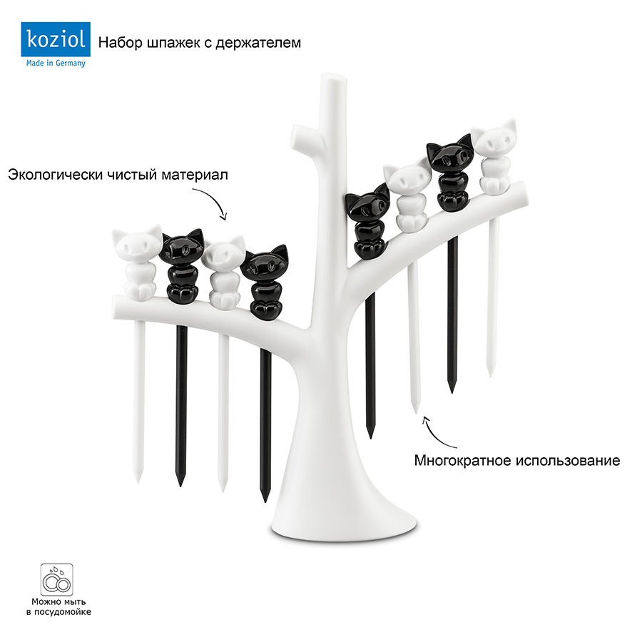Набор шпажек с держателем MIAOU станет незаменимым на любом застолье: с помощью разноцветных палочек можно красиво оформить оливки, ломтики сыра, канапе. Шпажки можно мыть в посудомоечной машине и использовать повторно длительное время. Набор посталяется с подставкой в виде дерева. Особенности: - экологически чистый материал - может использоваться неограниченное количество раз - яркие расцветки Производство: Германия