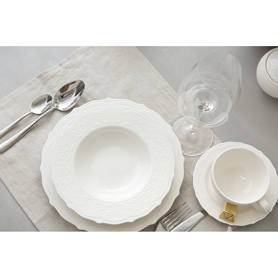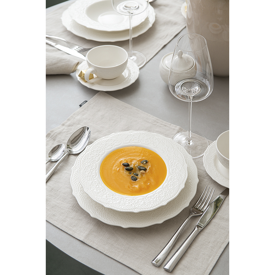 Тарелки Tracery великолепно дополнят коллекцию стильной и практичной посуды. Миска для супа из белоснежного фарфора с рельефной поверхностью отличается презентабельным внешним видом. Материал изготовления неприхотлив в уходе, не впитывает загрязнения, является экологичным и безопасным для здоровья. Набор подходит как для повседневной, так и для праздничной сервировки стола.