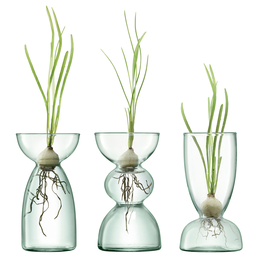 Вазы-кашпо Canopy созданы в партнерстве с проектом Eden. Емкости выполнены вручную из 100% переработанного стекла и имеют специальную форму, что позволяет использовать их не только для цветов, но даже для выращивания лука. Дизайн спроектирован таким образом, чтобы в верхней части находилась луковица, а корни располагались в воде внизу. Эти вазы стали лауретом премий iF Design Award и Green GOOD DESIGN Award.