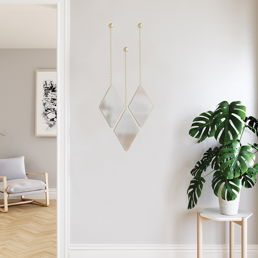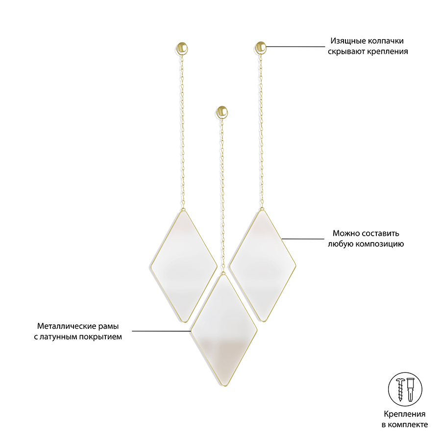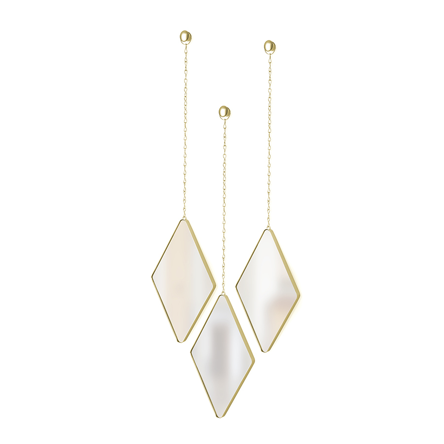 Набор из трех оправленных в металл зеркал - стильное украшение интерьера. Такие зеркала выглядят как драгоценные камни на подвесках.