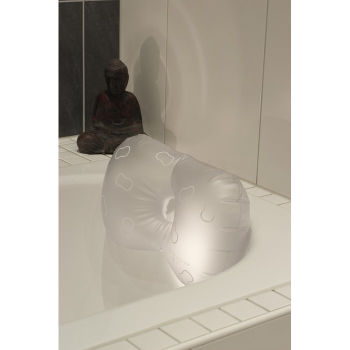 По настоящему расслабиться в ванной, наполненной пеной и ароматическими маслами за бокалом вина при свечах можно с помощью надувной подушки под голову. Она прочно крепится на присоски на бортик ванны, а Вам остается лишь положить на нее голову, наслаждаться и релаксировать. Можно сдуть и взять с собой в дорогу. Очень стильная и компактная, занимает мало места.
