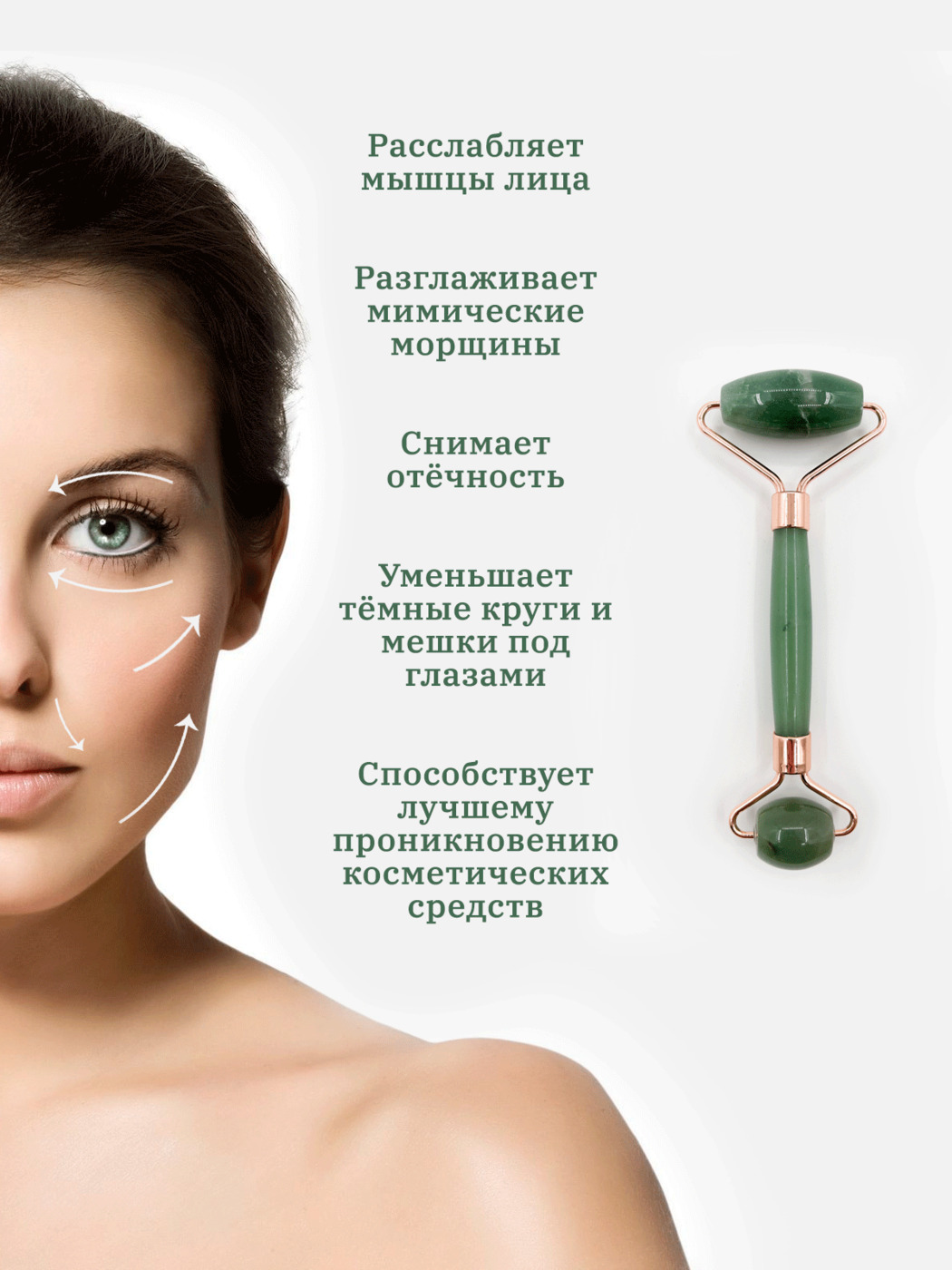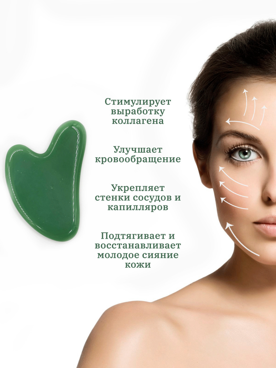 Этот косметический массажный инструмент изготовлен из натурального нефрита. Благодаря целебным качествам нефрита, во время процедуры расширяются сосуды, разгоняется кровь и омолаживаются клетки организма. После такого массажа клиенты отмечают прилив сил и энергии, как после утреннего душа. Массаж лица с нефритовым валиком также поможет в борьбе с несовершенствами кожи, такими как прыщи или небольшие покраснения, а также поможет разгладить морщинки, сделать кожу упругой и наполнить ее светом. В отличии от роллера, которым "разглаживаем" кожу и помогаем впитываться уходовым средствам, пластина гуаша за счет своей формы более универсальна. Мы можем регулировать интенсивность воздействия на кожу и прорабатывать более глубокие мышцы, успокаивая их и воздействуя на акупунктурные точки. Соответственно, пластину можно использовать не только для лица, но и для всего тела. для достижения максимального результата, рекомендуем выполнять массаж каждый день утром и вечером по несколько минут.