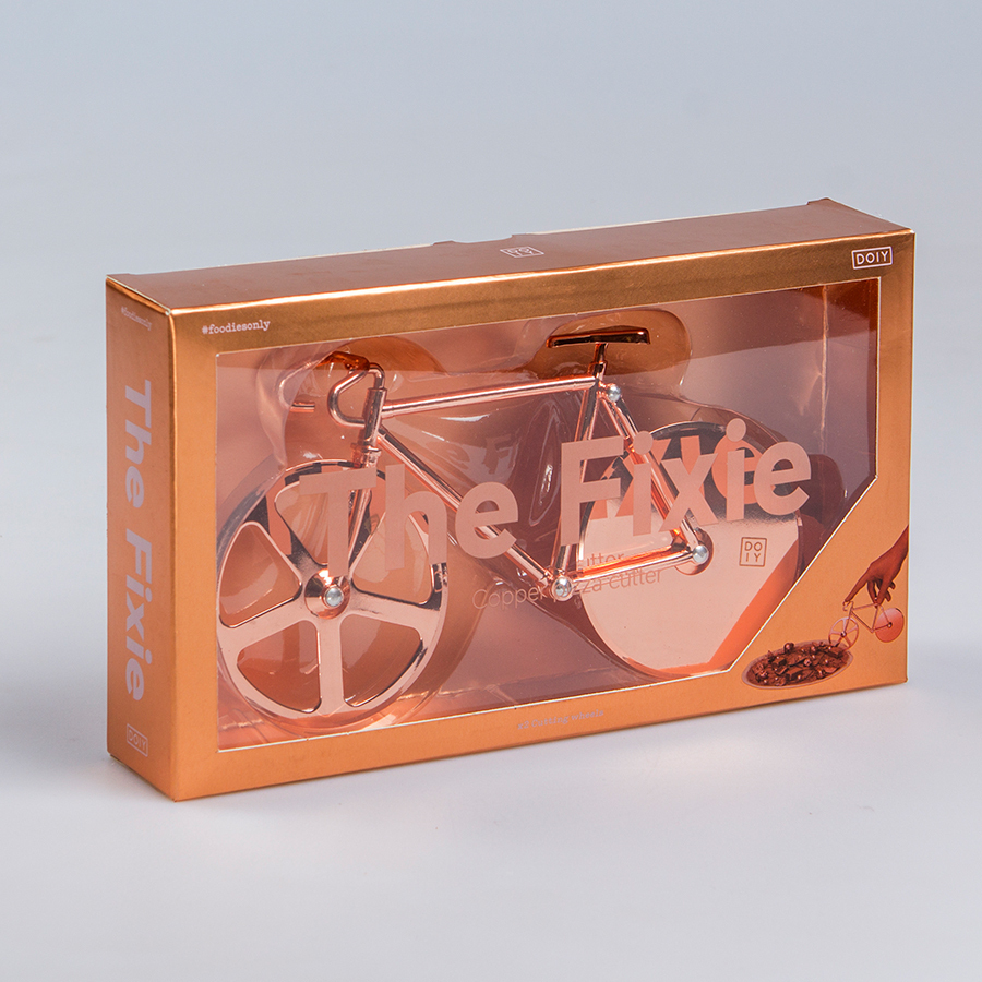 Дизайн: Нож для пиццы The Fixie Terrazzo имеет интересный нестандартный дизайн – он выполнен в виде двухколесного велосипеда. Благодаря двум острым ножам-колесам пиццу легко можно разрезать на нужное количество частей. Для удобства хранения предусмотрена специальная металлическая подставка. Материал: нержавеющая сталь.