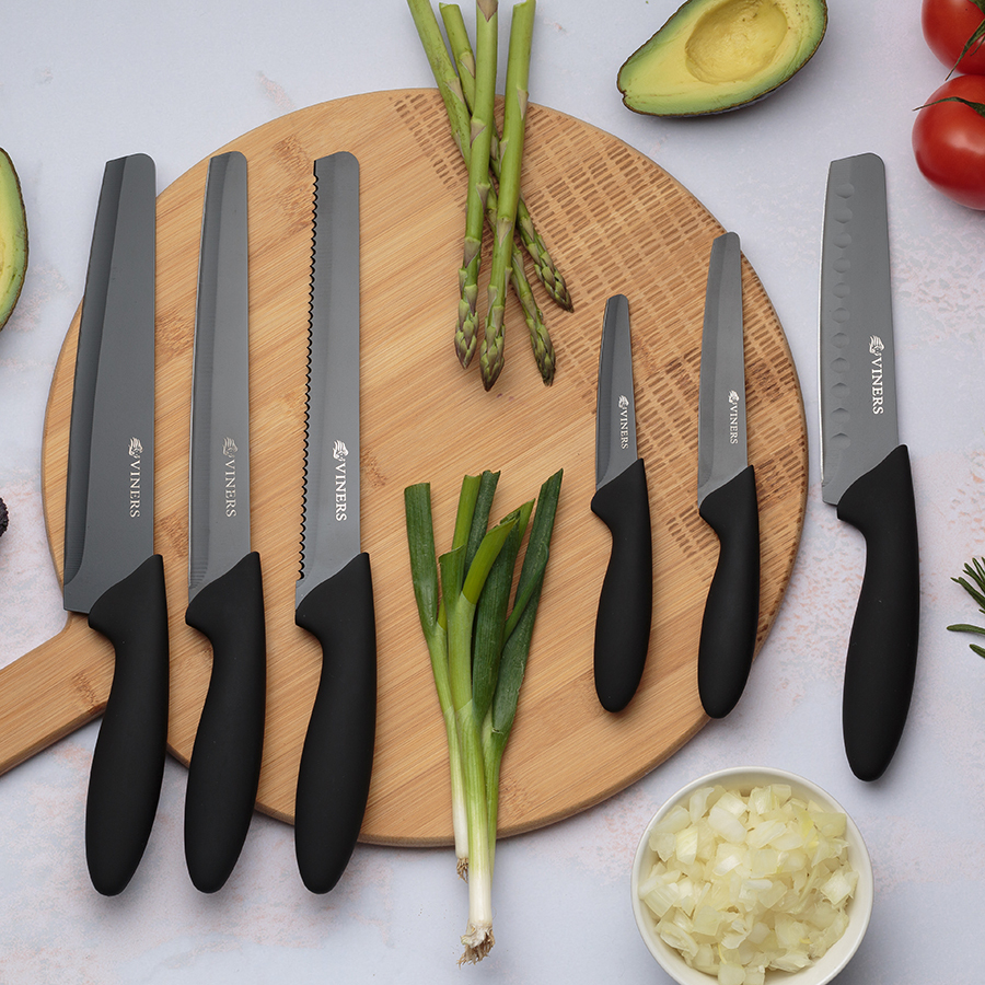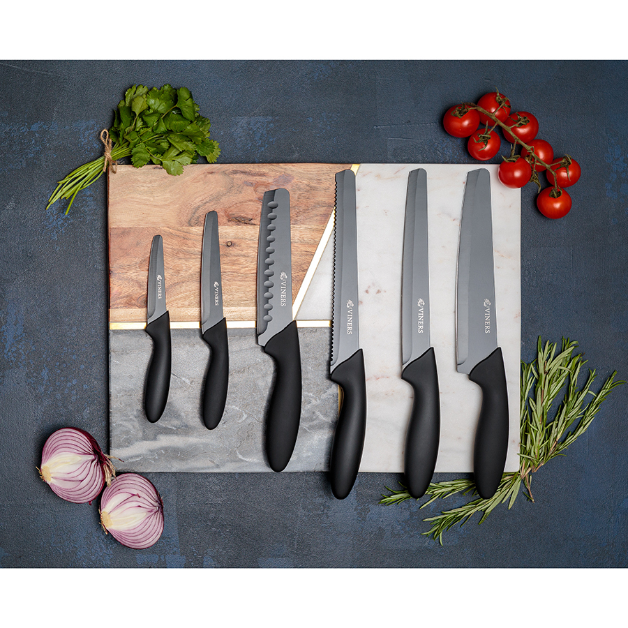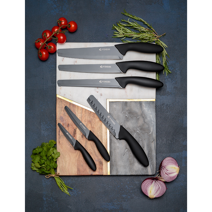 Универсальный нож Assure длиной 12,5 см станет незаменимым помощником на кухне. Компания Viners разработала инновационное лезвие, которое ставит безопасность на первое место. Особенность ножа – режущая часть с наконечником прямоугольной формы. Это гарантия защиты от несчастных случаев в доме или на открытом воздухе. Для изготовления лезвия используется прочная нержавеющая сталь. Поверхность клинка покрыта антипригарным слоем, который уменьшает трение при нарезке продуктов. Нож оснащен изогнутой мягкой ручкой для максимального комфорта при работе на кухне.