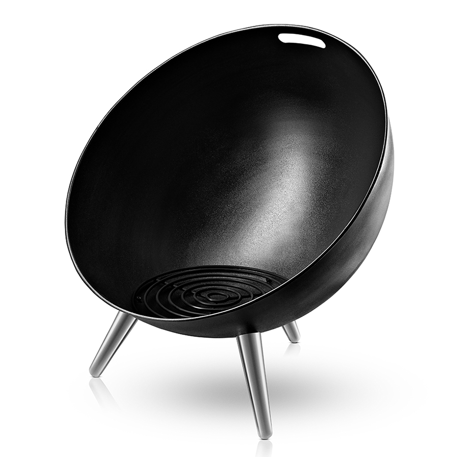 Очаг Fire Globe подчёркивает очарование живого пламени своими очертаниями и идеально подходит для того, чтобы собираться семьёй или дружеской компанией на природе. Очаг создаёт не только прекрасную тёплую атмосферу, то также производит достаточно тепла, чтобы не дать никому замёрзнуть прохладными летними вечерами и продлить пребывание на воздухе допоздна. Когда огонь не горит, очаг легко переносится на другое место - это может быть необходимо в связи с наличием солнца, ветра или других погодных условий. Просто поднимите очаг с помощью встроенной ручки. Очаг сделан из чёрной матированной стали и алюминиевых ножек. Диаметр 64 см.