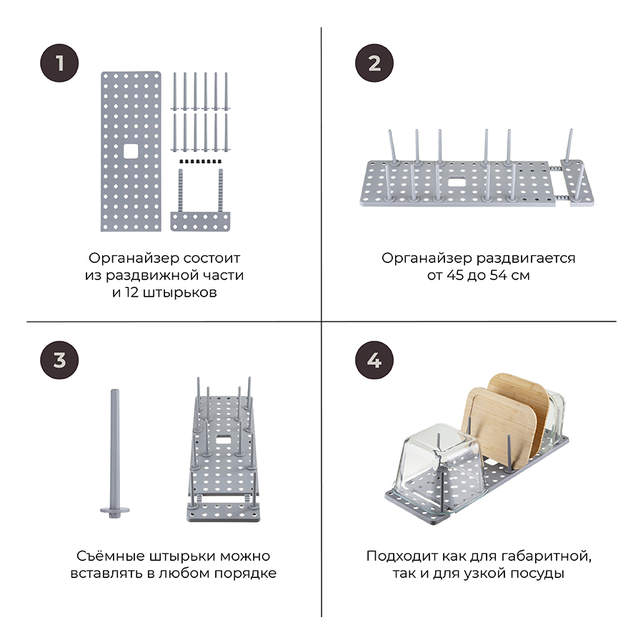 Компактный органайзер для посуды Aristyd – необходимый аксессуар на кухне, в котором вы сможете удобно разместить вымытую посуду. За счет лаконичного дизайна изделие прекрасно впишется в любой современный интерьер. Высококачественный и износостойкий материал обеспечивает практичность в использовании, исключая негативное воздействие влаги и механические повреждения поверхности.