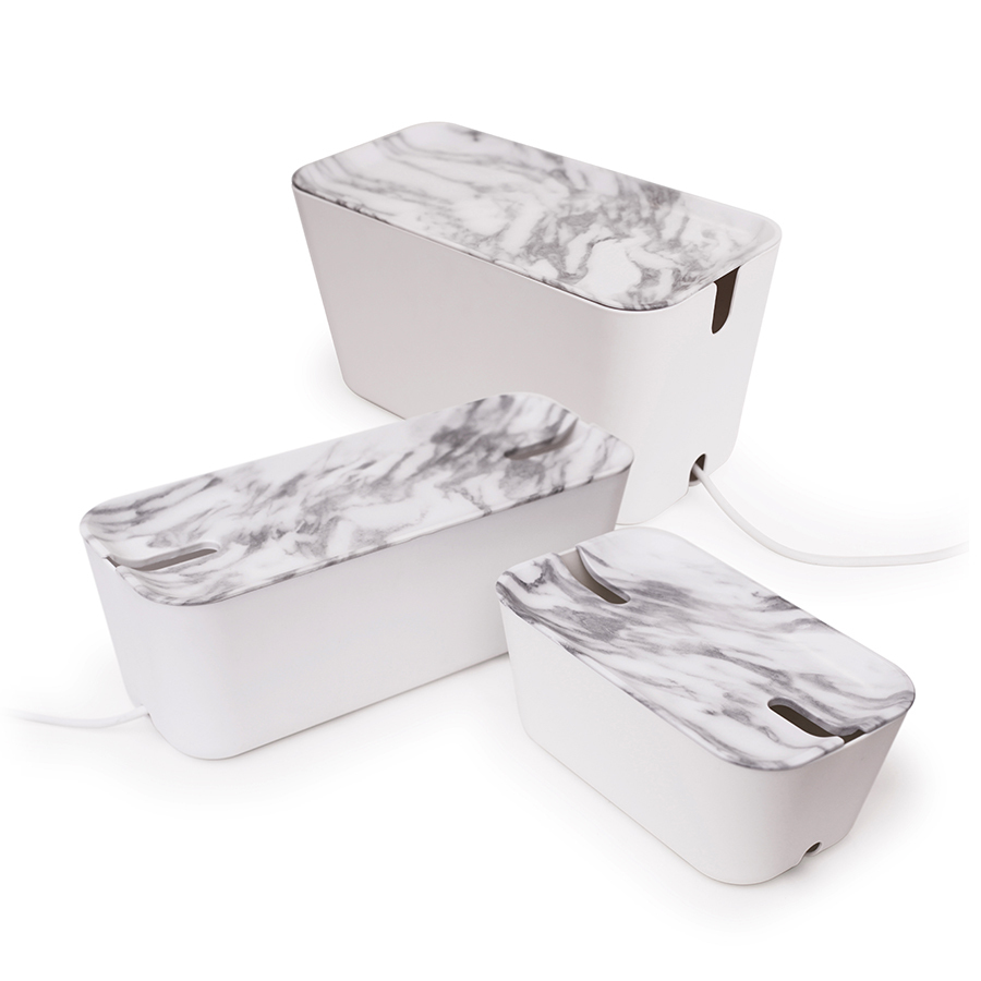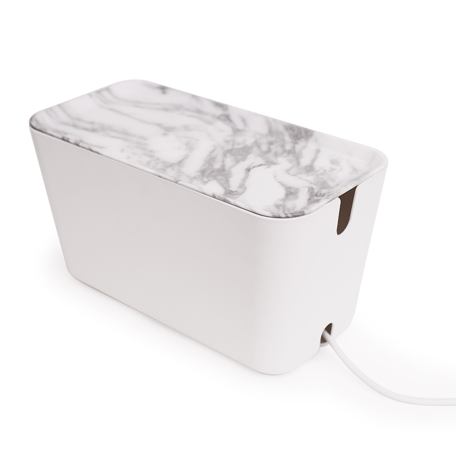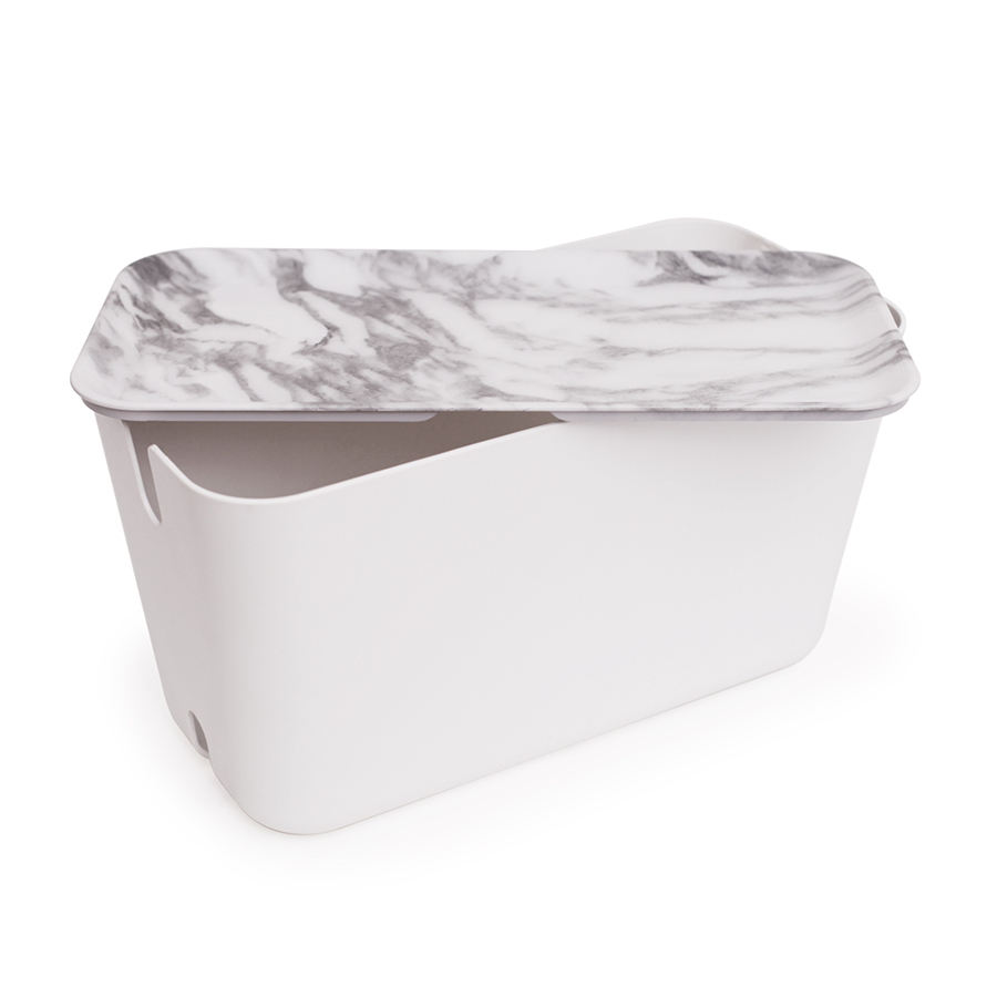 Органайзер для проводов CableBox XXL – это сверхвместительная модель, предназначенная не только для хранения кабелей, но и для электронного оборудования (маршрутизаторов, Wi-Fi-роутеров, игровых приставок и пр.). Он выполнен в том же стиле, что и все остальные модели серии, однако имеет несколько функциональных особенностей. Большая крышка может использоваться в качестве подставки под различную технику, а доступ к кабелям здесь осуществляется через новую кабельную розетку, расположенную на задней стороне коробки. Основные преимущества: • Скрывает удлинители, заглушки и адаптеры; • Обеспечивает надежное хранение электрических проводов; • Изготовлен из огнестойкого пластика; • Оптимальные габариты позволяют хранить большое количество кабелей и не загромождать пространство помещения; • Оснащен силиконовыми ножками для защиты поверхностей от царапин; • Крышка с функцией щелчка крепко удерживает шнуры и зарядные устройства; • Нижняя часть выдвижного ящика имеет вентиляционные отверстия. CableBox имеет полностью продуманную конструкцию, которая обеспечивает ему отличную надежность и высокий уровень безопасности. Он идеально подходит для хранения большого количества проводов и зарядных устройств. Кроме того, органайзер можно использовать как с заземленными, так и с не заземленными удлинителями.
