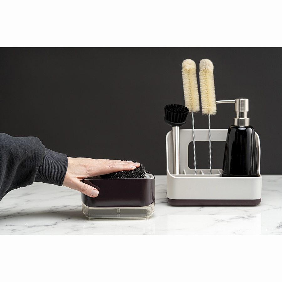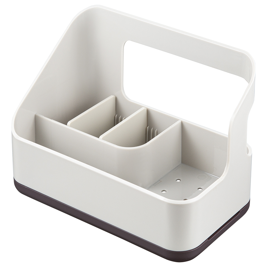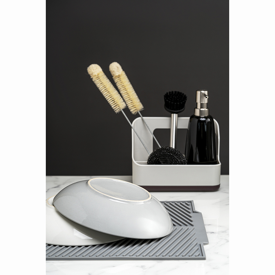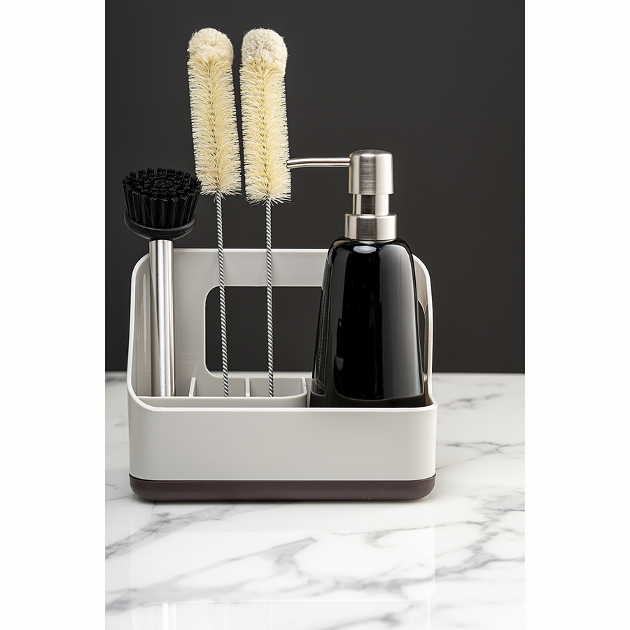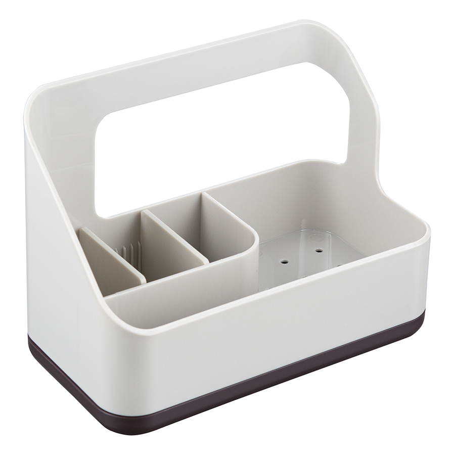 Органайзер Ronja позволит удобно разместить на раковине все необходимые аксессуары для очистки поверхностей и мытья посуды – губку, щетку, бутылку с жидким средством, целлюлозную салфетку и прочее. Специальная конструкция со съемным поддоном для оттока воды создает условия для быстрой сушки кухонной ветоши. Несмотря на небольшой вес, изделие из АБС-пластика и полипропилена отличается прочностью, устойчивостью к повреждениям и износу.