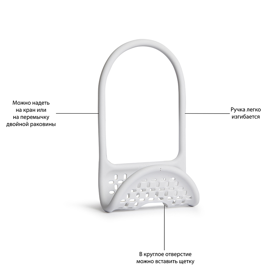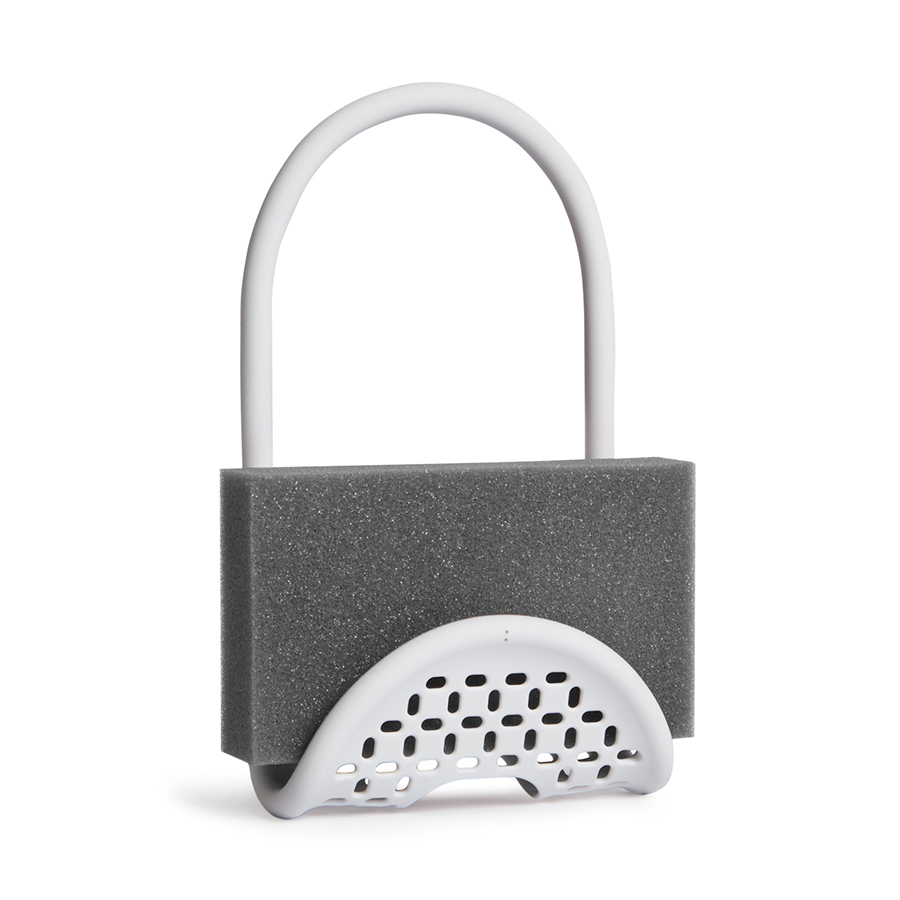 Уникальный органайзер для раковины из металлической проволоки с пластиковым покрытием. Ручка удобно гнётся и позволяет вешать органайзер на водопроводный кран или боковую сторону раковины.Подходит для хранения губок, щёток и прочих приспособлений для чистки и мытья. Перфорация даёт воздуху свободно циркулировать, поэтому губки и щётки будут сохнуть быстрее. Дизайнеры Eug?nie de Loynes и Jordan Murphy