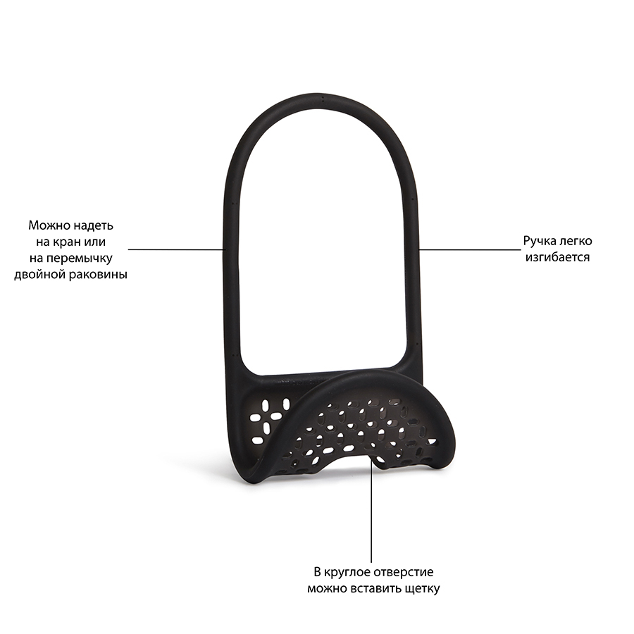 Ручка удобно гнется и позволяет вешать органайзер на водопроводный кран или боковую сторону раковины. Перфорация дает воздуху свободно циркулировать, поэтому губки и щетки будут сохнуть быстрее.