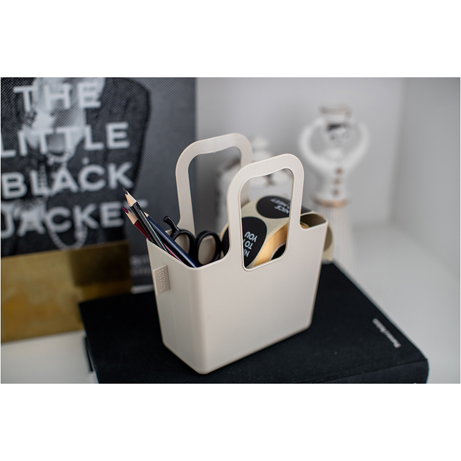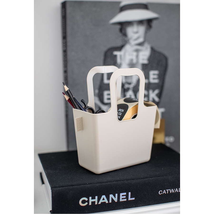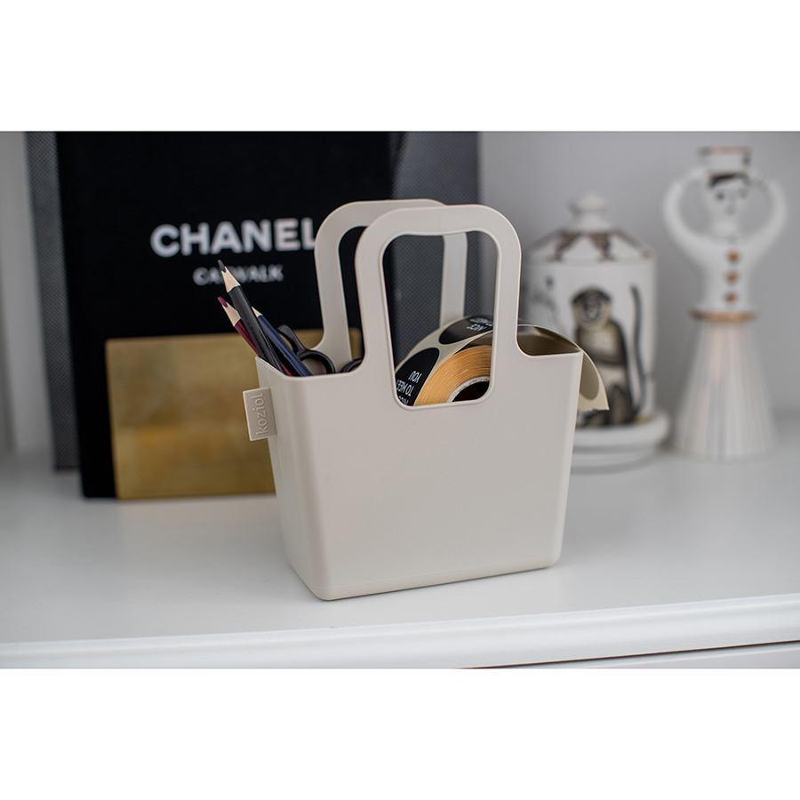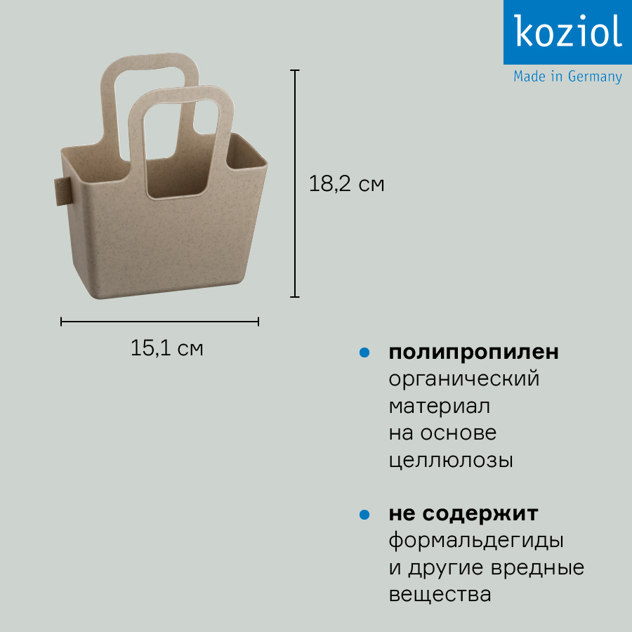 Линейка органайзеров в виде сумок-шопперов была создана дизайнерами бренда Koziol для организации хранения самых разных вещей. В коллекции представлены различные цвета и размеры: Taschelini S (маленький), Taschelino M (средний), и Tasche XL (большой).
