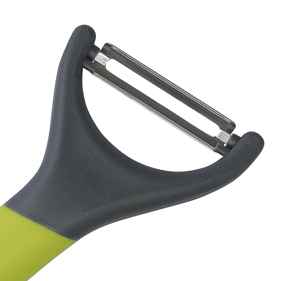 - Стальное лезвие обладает высокой прочностью и расположено под определенным углом для срезания кожуры оптимальной толщины.