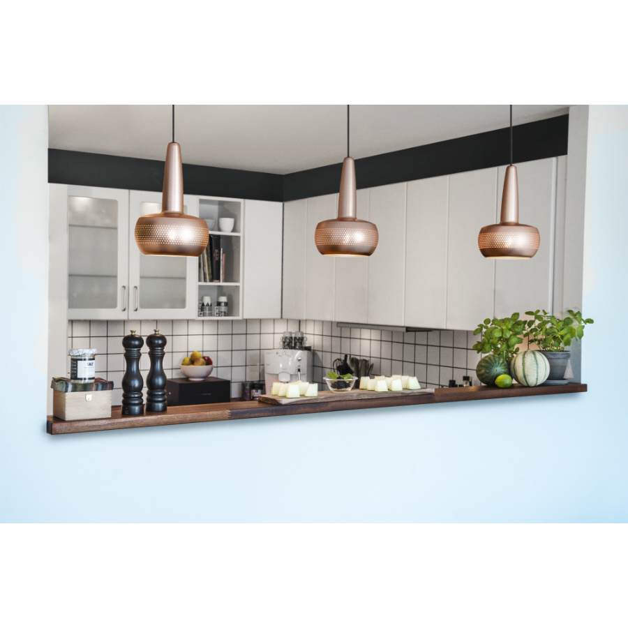 Элегантный светильник в ретро стиле Clava. Мягкий, рассеянный свет проходит через множество отверстий на алюминевом корпусе светильника. Отлично смотрится в интерьере как индивидуально так и в группе на разной высоте. Обратите внимание, что шнур для подключения и источник питания в комплект не входят. Возможна установка на подвесе (приобретается отдельно). Рекомендуемый источник освещения: Max 15W LED, цоколь E27/E26. Размеры: 21.5 х 33 см