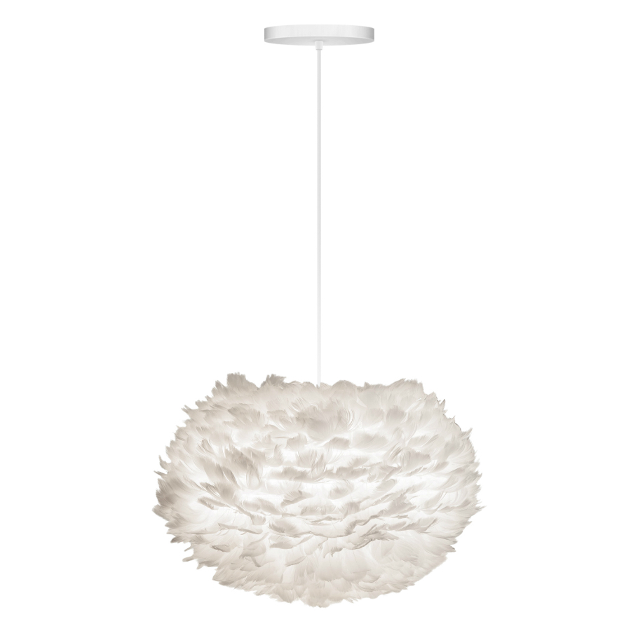 Восхитительный плафон из натуральных гусиных перьев, каждое из которых аккуратно вручную приклеено к бумажному сердечнику. Дает уютный рассеянный свет, поэтому идеально подойдет для спальни, холла и любого помещения, где не нужен яркий свет. Производитель рекомендует чистить поверхность феном. Легко устанавливается практически на любой держатель для лампы. Рекомендуется лампочка максимум 60 ватт (Е27, Е26). Обратите внимание: шнур и источник света в комплект не входят.