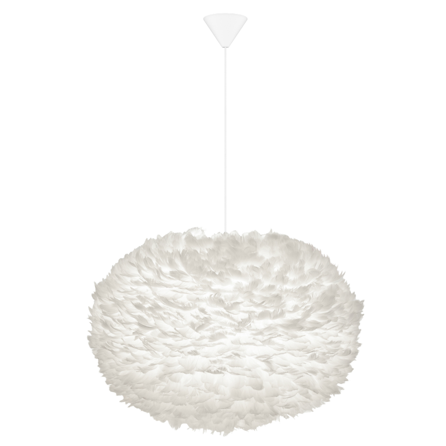 Восхитительный плафон из натуральных гусиных перьев, каждое из которых аккуратно вручную приклеено к бумажному сердечнику. Дает уютный рассеянный свет, поэтому идеально подойдет для спальни, холла и любого помещения, где не нужен яркий свет. Производитель рекомендует чистить поверхность феном. Легко устанавливается практически на любой держатель для лампы. Рекомендуется лампочка максимум 60 ватт (Е27, Е26). Обратите внимание: шнур и источник света в комплект не входят.