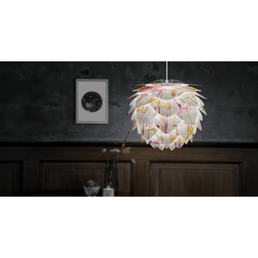 Лепестки светильника изготовлены из белой акварельной бумаги. Это не просто лампа - это холст для творчества, где вы можете выразить свой творческий потенциал. Рисовать можно акварельными или любыми другими красками, маркерами, ручками, баллончиками. Кроме того, непосредственно на листьях лампы можно печатать готовые шаблоны. Источник освещения (в комплект не входит): max 15W, цоколь Е26/E27. Размеры: 34х27х34 см.