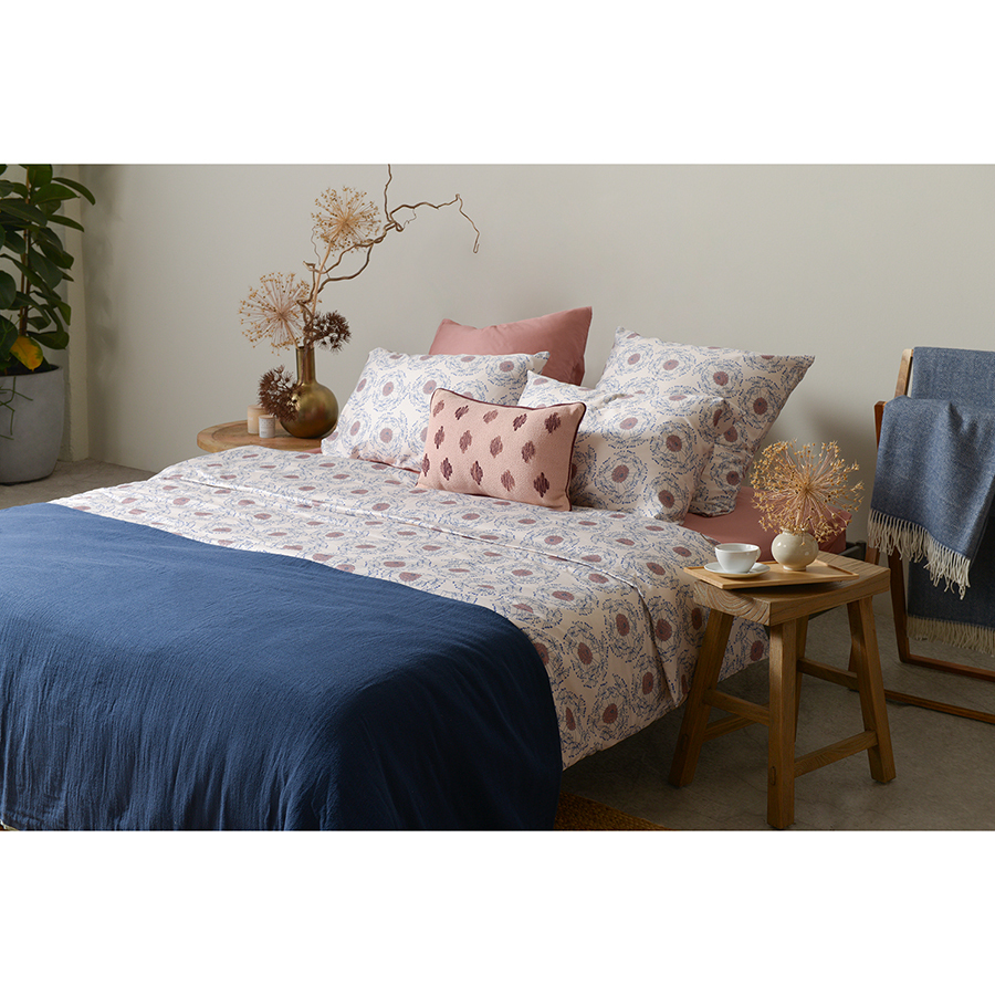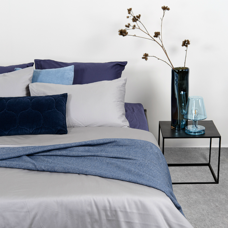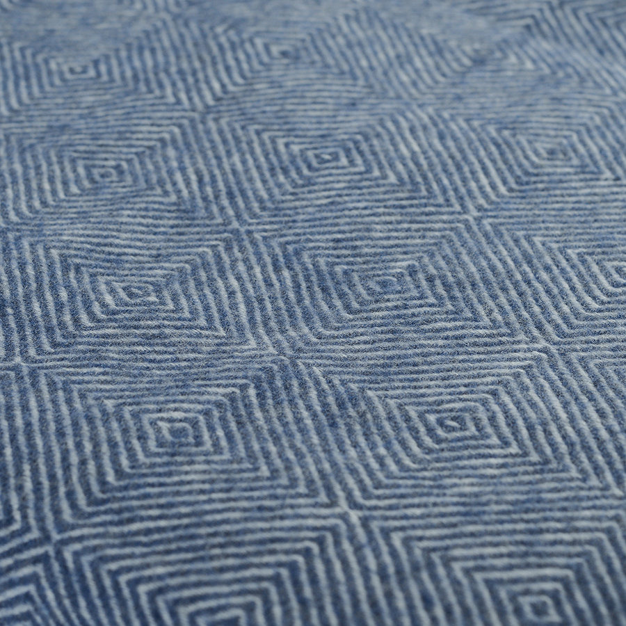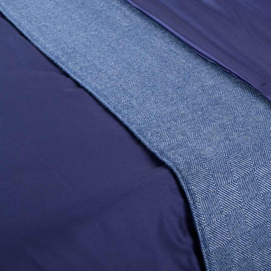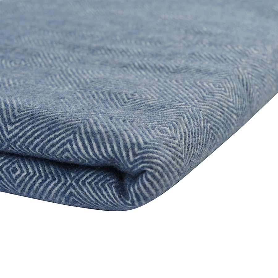 Синий плед с белоснежной бахромой по краям украсили фактурным микроузором. Приятный на ощупь аксессуар выполнен из тонкой и при этом теплой шерсти мериноса. Такой материал мягче натурального шелка и в несколько раз эластичнее хлопка. Изделие упаковано в крафтовую коробку.