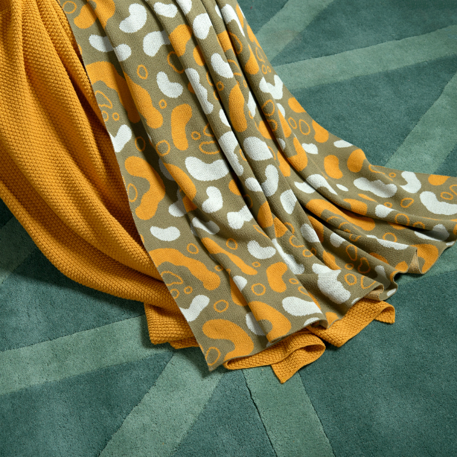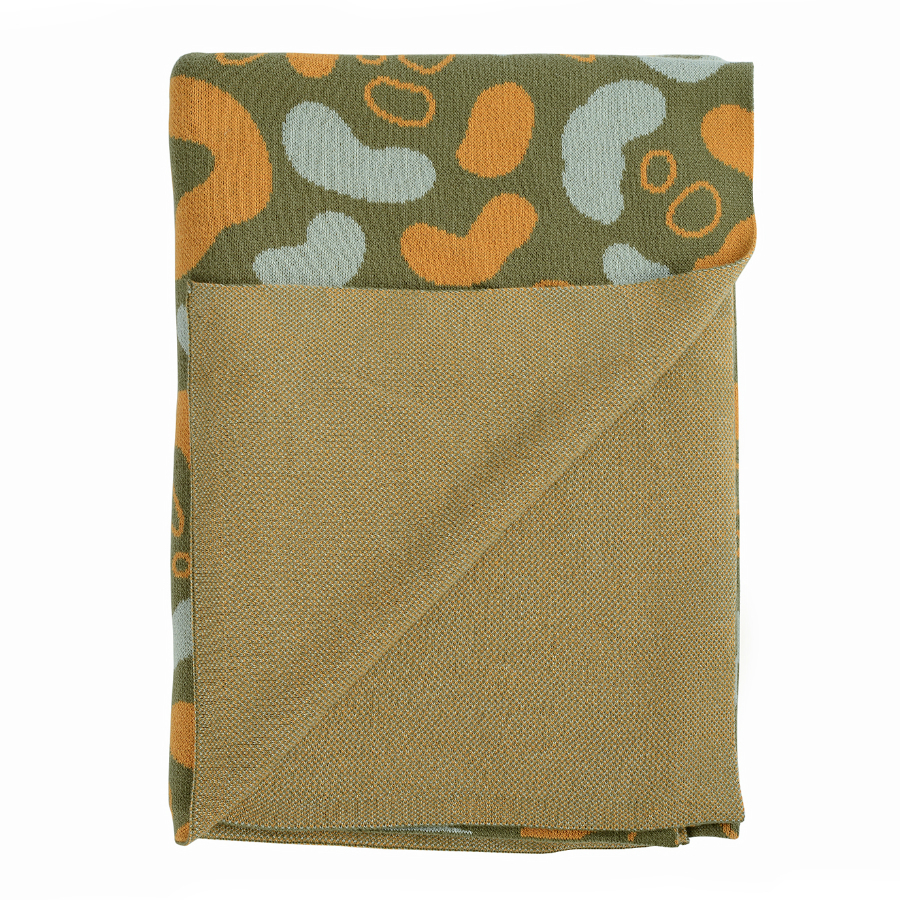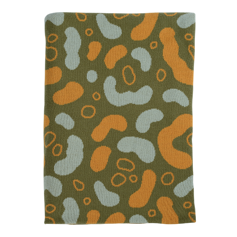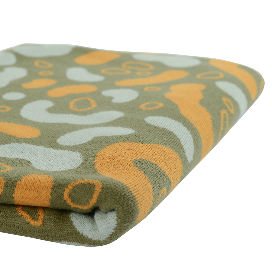Вязаный плед оливкового оттенка идеально подчеркнет интерьер: за это отвечает крупный авторский узор Animal spots. Изделие выполнено из прочного мягкого хлопка. Благодаря плотному переплетению гладких нитей такой текстиль не деформируется, не линяет, и на нем не образуются катышки. Плотность ткани - 380GSM. Изделие упаковано в брендированную крафтовую коробку.