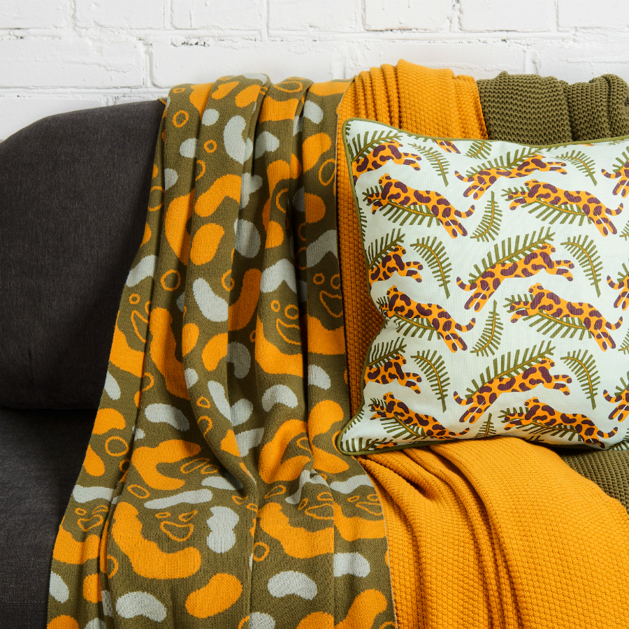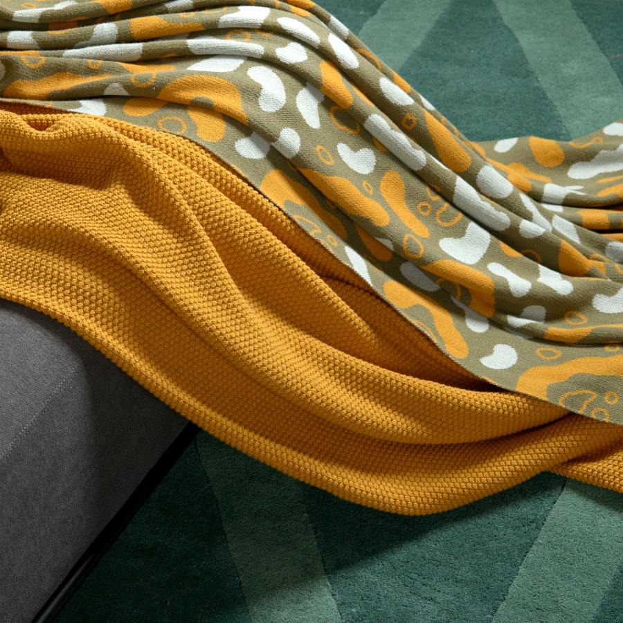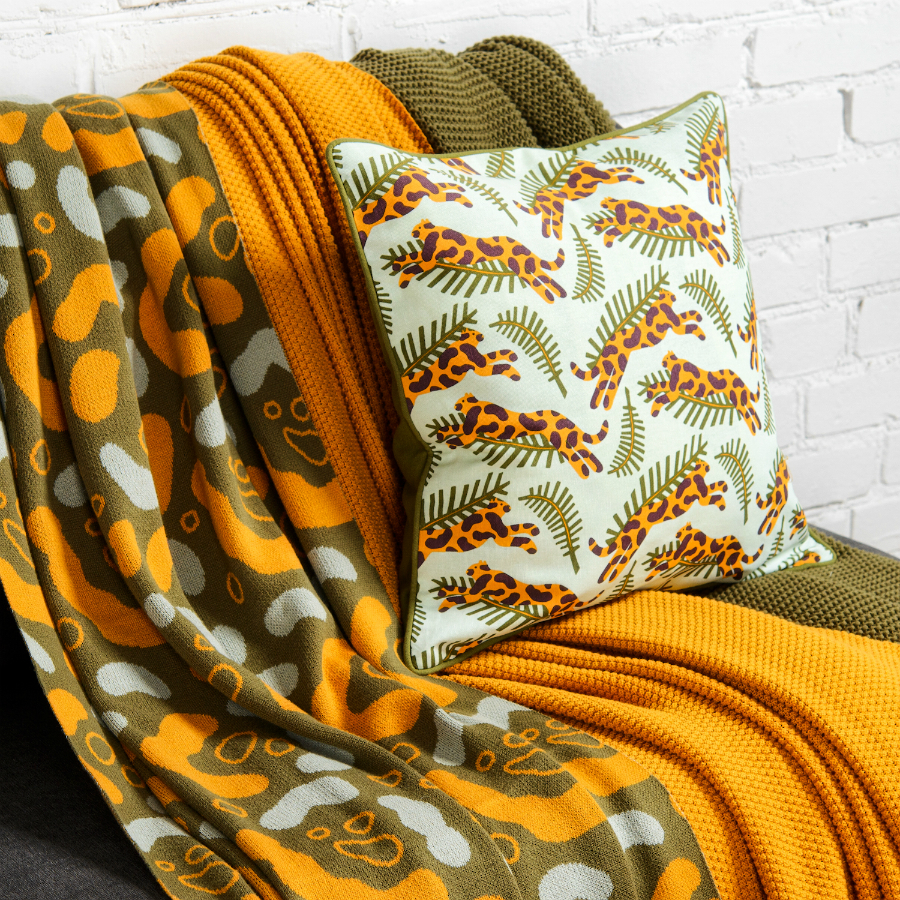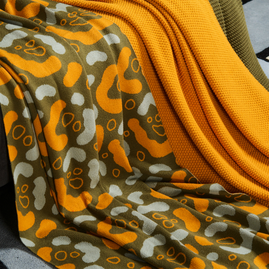 Вязаный плед оливкового оттенка идеально подчеркнет интерьер: за это отвечает крупный авторский узор Animal spots. Изделие выполнено из прочного мягкого хлопка. Благодаря плотному переплетению гладких нитей такой текстиль не деформируется, не линяет, и на нем не образуются катышки. Плотность ткани - 380GSM. Изделие упаковано в брендированную крафтовую коробку.
