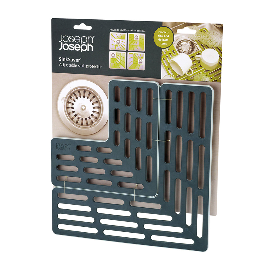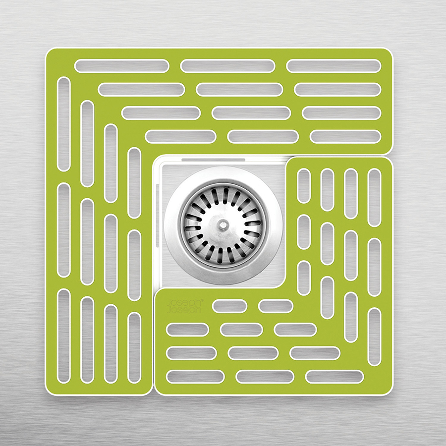 Состоит из двух сетчатых отделений, которые можно располагать в нескольких конфигурациях — благодаря этому предмет подходит для раковин абсолютно любых форматов. Обе части надежно скрепляются, образуя широкую мягкую поверхность. Нескользящие резиновые ножки слегка приподнимают коврик, способствуя быстрому стеканию воды и циркуляции воздуха. Минимальный размер раковины: 31 х 31 см.
