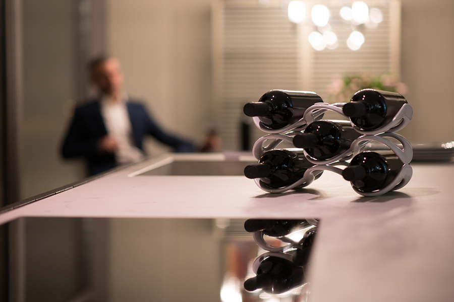 Стильная подставка для бутылок Cuvee станет оригинальным украшением гостиной, кухни или кабинета. Хранение вина в горизонтальном положении – это наиболее правильное решение, поскольку напиток соприкасается с пробкой и не дает ей высохнуть. Подставка выполнена в элегантном дизайне и рассчитана на хранение пяти бутылок. Несмотря на вместительность, она компактна и займет мало места на столе, комоде или полке. Аксессуар изготовлен из высококачественного полимерного материала SMMA. Благодаря этому конструкция отличается прочностью и стойкостью к большим нагрузкам.