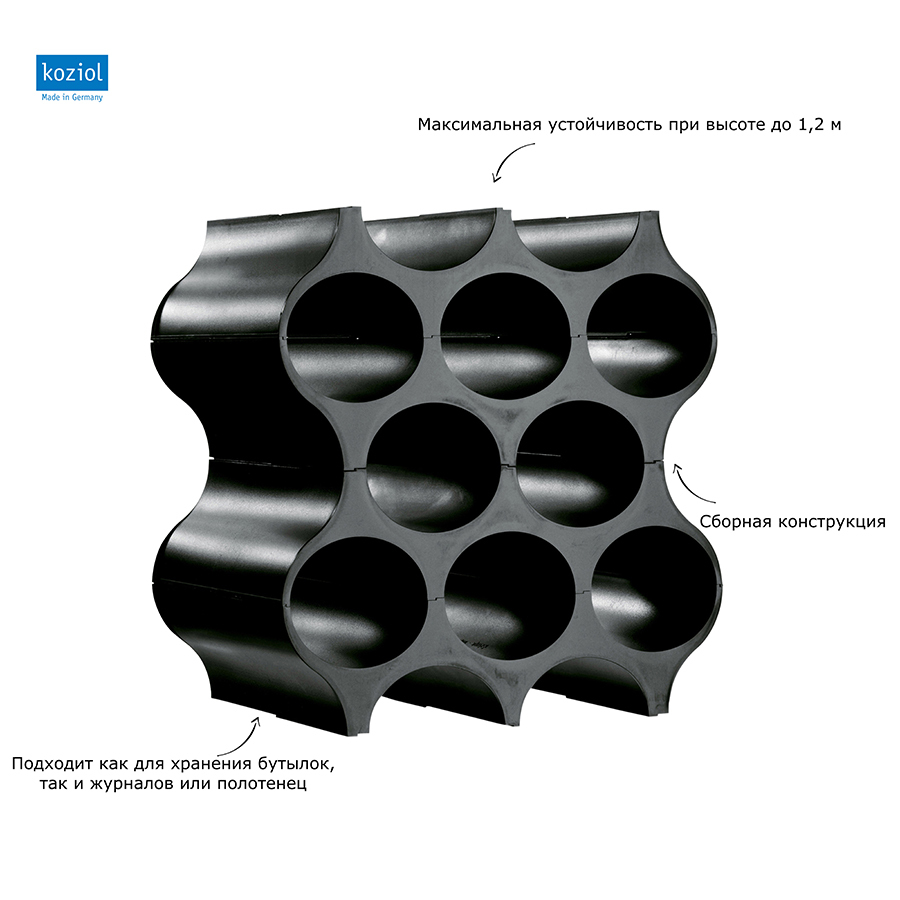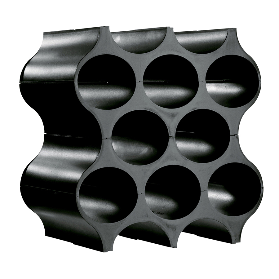 Подставка для бутылок Set-Up имеет разборную конструкцию - из нескольких наборов можно построить целую стену, и она будет служить стильным разделителем пространства в комнате. Устойчивый каркас напоминает пчелиные соты, в которых все бутылки будут в безопасности. Кроме того, внутри можно хранить свернутые журналы и газеты.