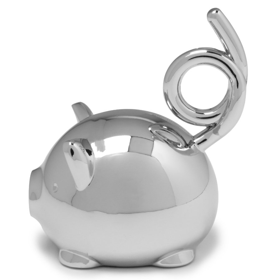 Подставка для колец Squiggy Свинка – стильный и функциональный держатель для украшений от Umbra. Статуэтка предназначена как для хранения ювелирных изделий, так и общего декора комнаты. Хвост свинки - импровизированная вешалка для колец и перстней. Теперь украшения не будут валяться на полках, случайно заброшенные и забытые.