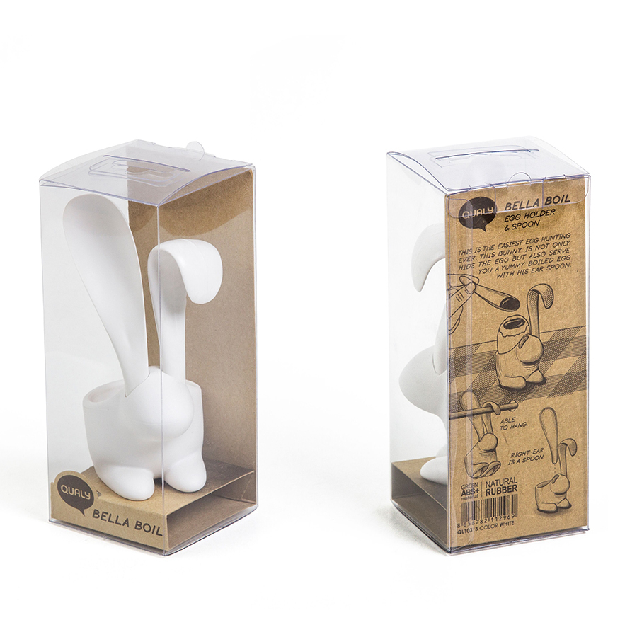 Подставка для яйца Bella Boil станет оригинальным украшением стола и сделает ваш завтрак приятным и комфортным. Модель выполнена в виде забавного зайца с ложкой вместо ушка. Столовая посуда отличается оригинальным дизайном, который непременно оценят взрослые и дети. Для изготовления подставки мастера используют пищевой ABS-пластик, который отличается экологичностью и высокой прочностью.