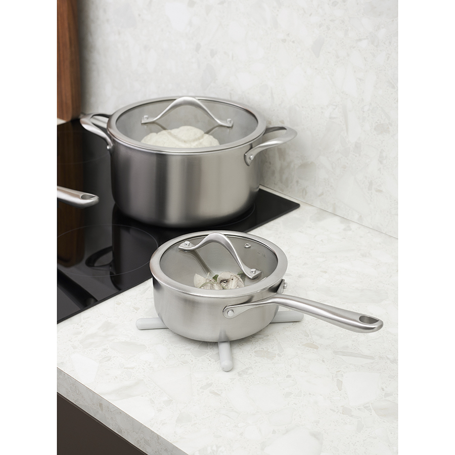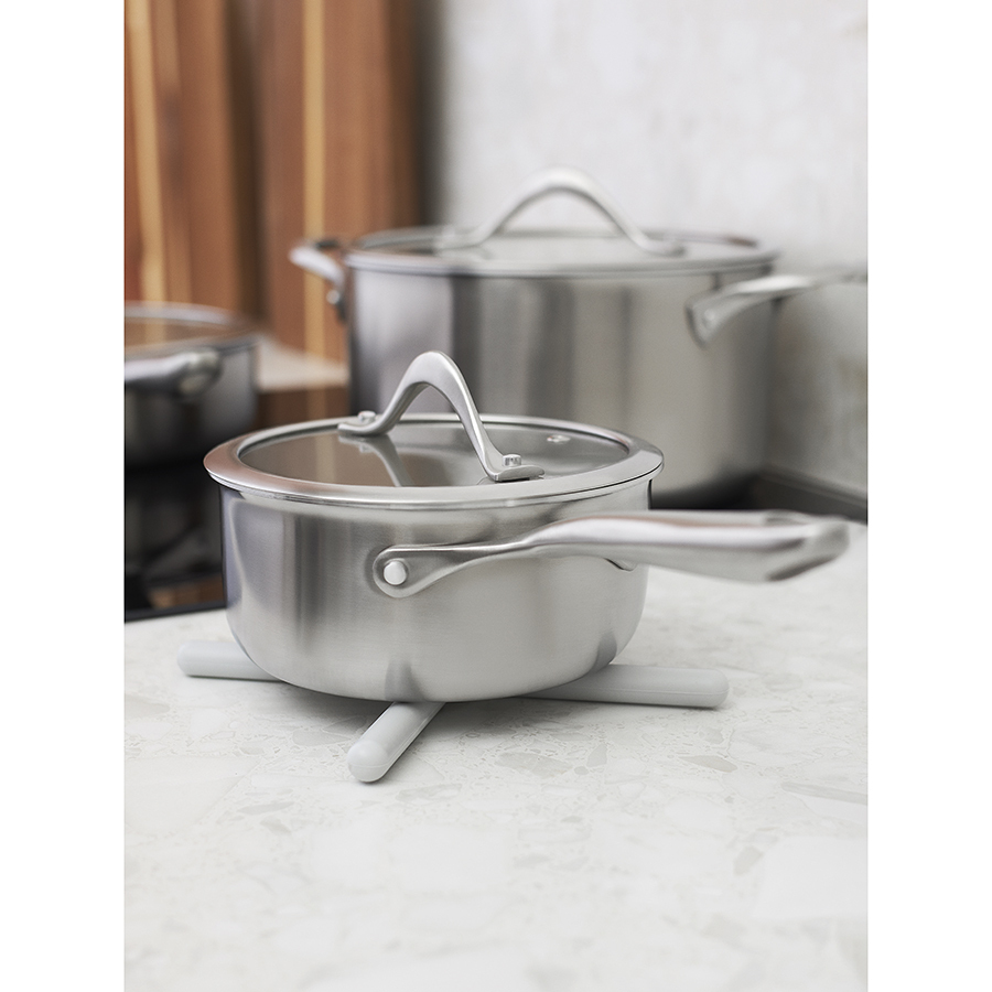 - Подставка подходит для всех типов посуды, включая сковороды, кастрюли, горшки и прочее, и легко складывается для компактного хранения.
