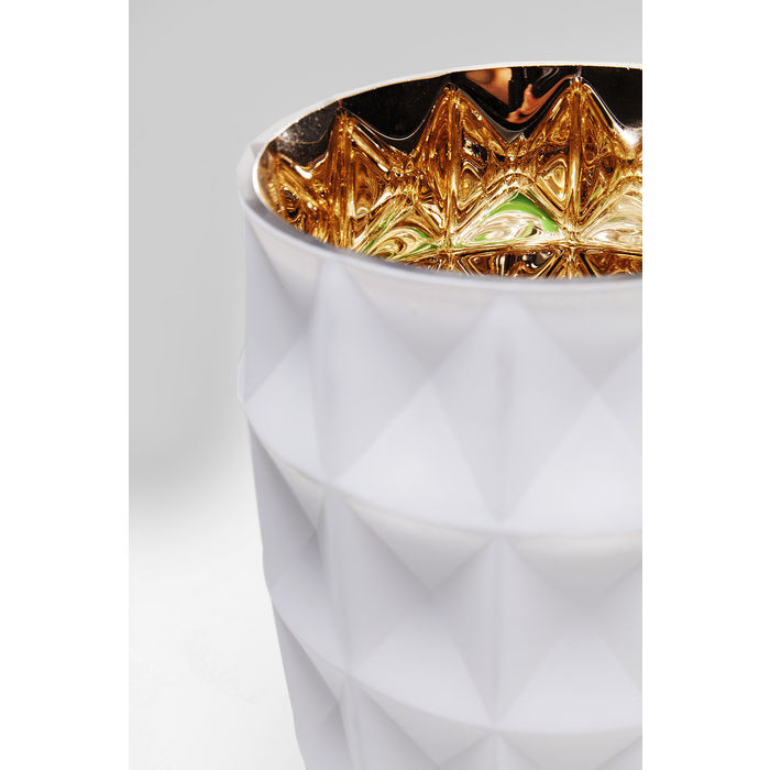 Этот подсвечник просто сияет изнутри! Простые геометрические формы образуют поверхность, притягивающую взгяд. Изысканный, универсальный подарок!