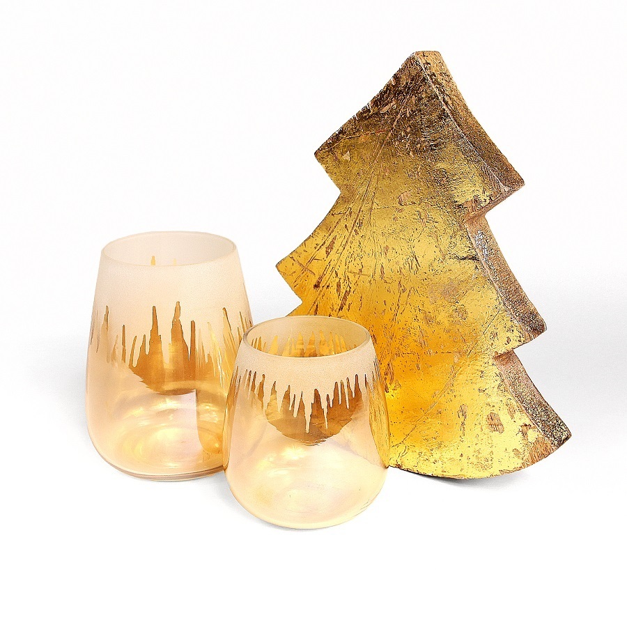 Декоративный подсвечник из стекла, произведен вручную. Создаст уютную новогоднюю атмосферу, особенно красиво смотрится в комплекте подсвечников разного размера.