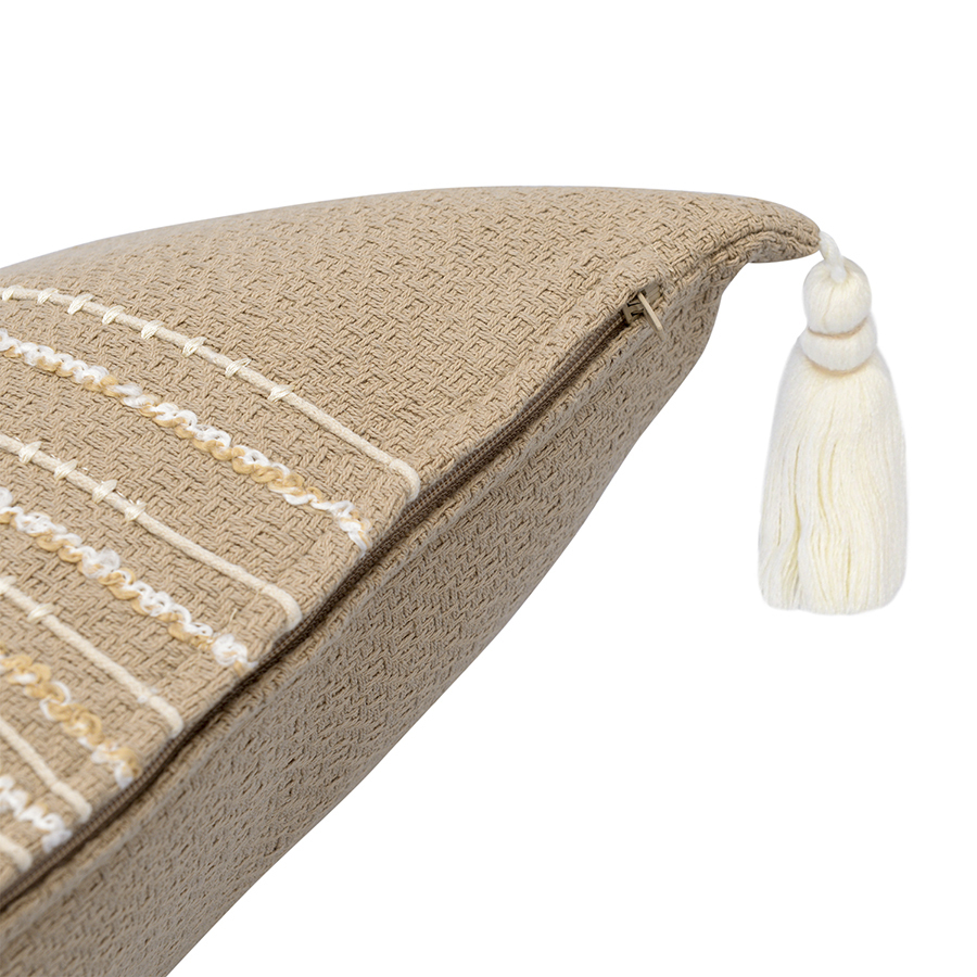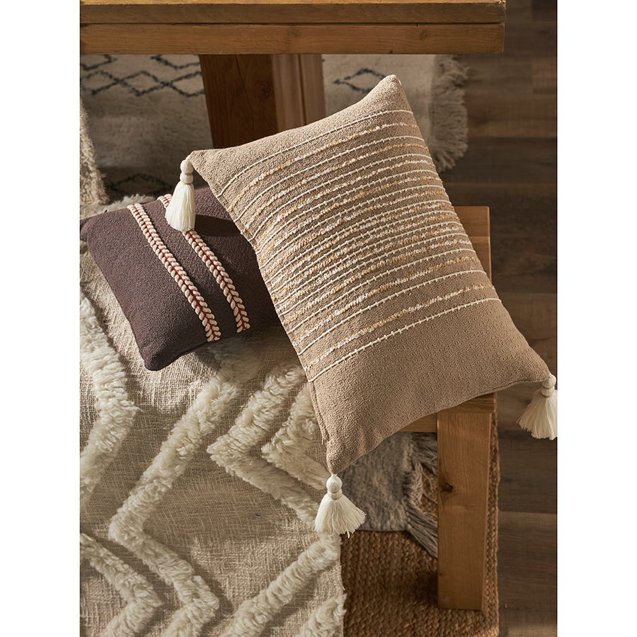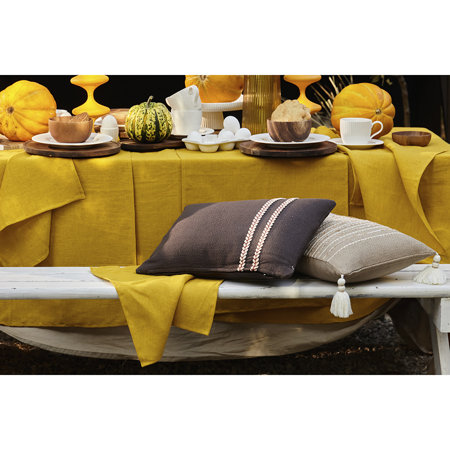 Декоративные чехлы, подушки и пледы с объемным декором (вышивкой, помпонами, кисточками, бахромой) нельзя стирать и сушить в машинке. Засохшие пятна можно удалять мягкими щетками путем соскабливания загрязнения в направлении к центру пятна, а влажные — бумажными салфетками или тканью с использованием мыла или мягкого моющего средства. Гладить такие изделия также запрещается. Перед использованием изделия обязательно ознакомьтесь с правилами ухода на этикетке.