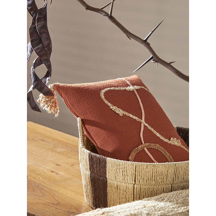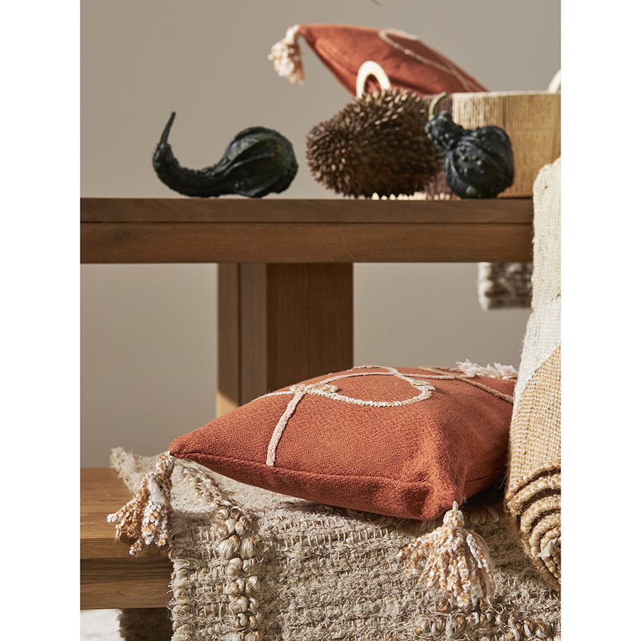 Декоративная подушка Geometry терракотового цвета из коллекции Ethnic поможет организовать в вашем доме уютное и гармоничное пространство, где захочется отдыхать от ежедневной суеты и приятно проводить время с друзьями и семьей. Интересные элементы в виде геометрического узора и кисточек добавят в интерьер яркий акцент и будут отлично сочетаться с различными дизайнерскими решениями.