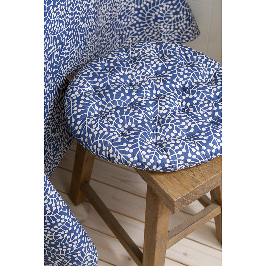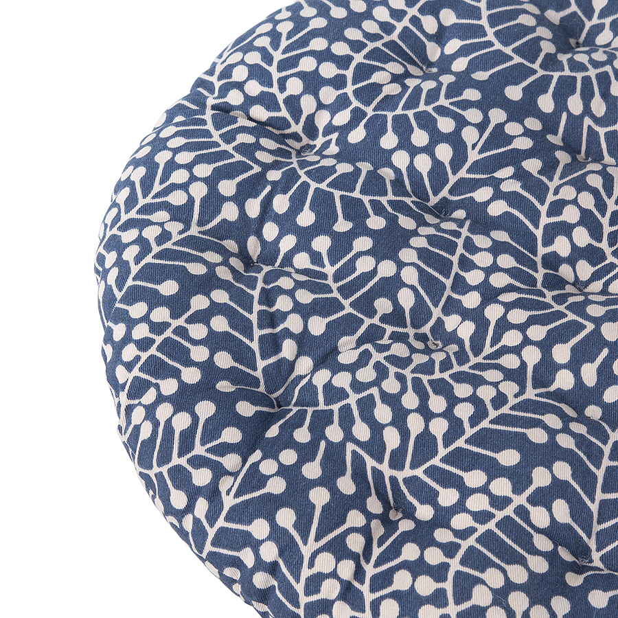 Подушка на стул круглая темно-синего цвета с принтом Спелая Смородина из коллекции Scandinavian touch сделает жесткую поверхность в доме и на свежем воздухе более комфортной для сидения. Изделие с авторским принтом, разработанным одним из ведущих финских дизайнерских агентств, органично впишется в любой современный декор. Модель выполнена из прочного хлопка, который хорошо впитывает влагу и не деформируется после множества стирок. Благодаря плотному наполнителю из полиэстера изделие не потеряет свою форму.