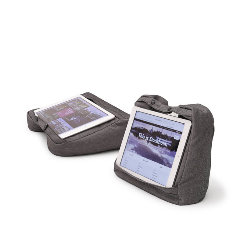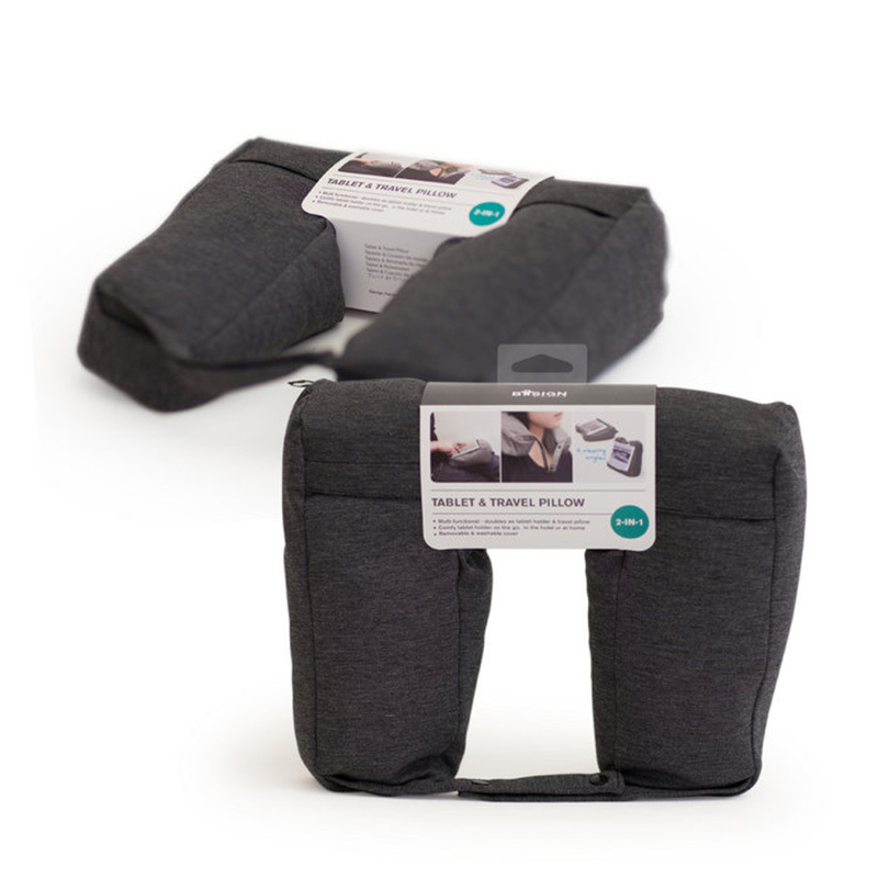 Оригинальный и исключительно удобный аксессуар для путешествий 2-в-1. Анатомическая подушка-подголовник предназначена для комфортного отдыха в самолётах, машинах и автобусах. При необходимости она также может применяться как подставка для планшета: достаточно просто покрепче затянуть ремешки — и подушка образует устойчивую поверхность для удобной работы или кинопросмотра. Подставку можно использовать как вертикально, так и горизонтально, положив на колени или на стол под небольшим регулируемым углом. Благодаря специальному наполнителю подушка обеспечивает очень комфортную поддержку для головы и шеи. Ремешки позволяют прикреплять подушку к сумке или чемодану снаружи. Верхний чехол можно снимать для лёгкой стирки.