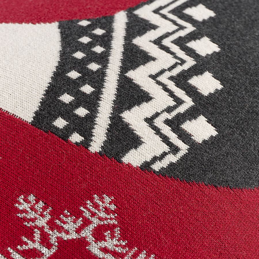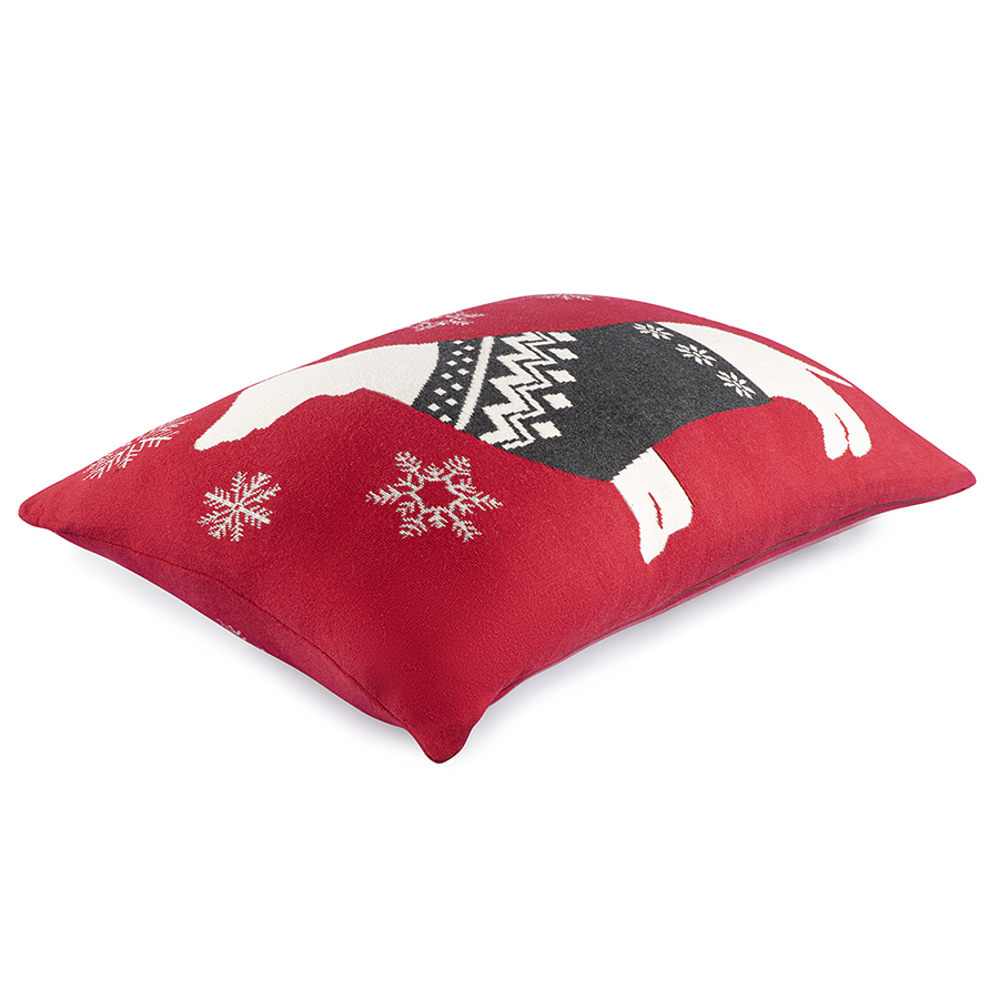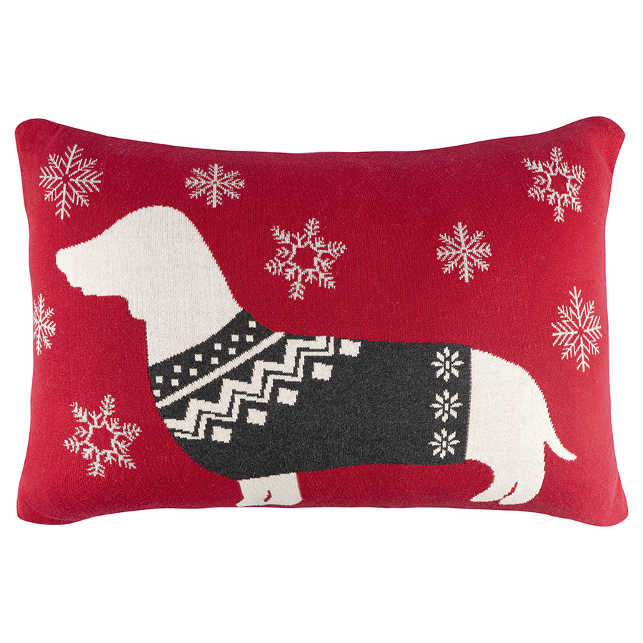 Подушка вязаная с новогодним рисунком Fancy doggy из коллекции New Year Essential поможет в создании праздничного настроения и уютной атмосферы.