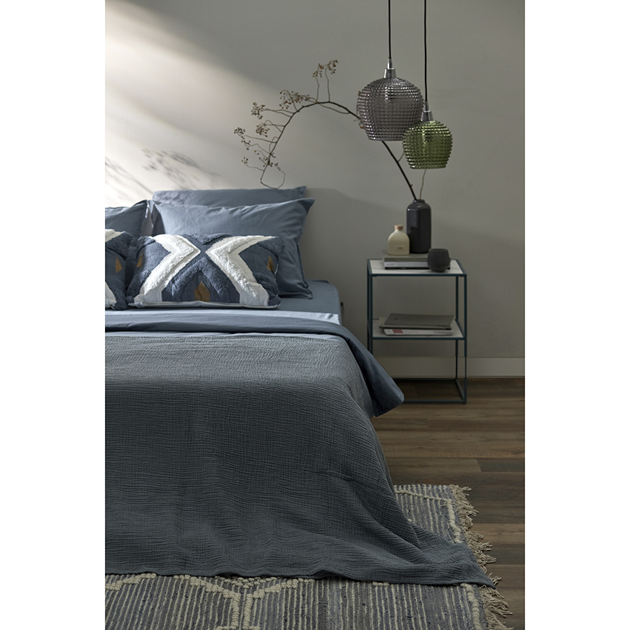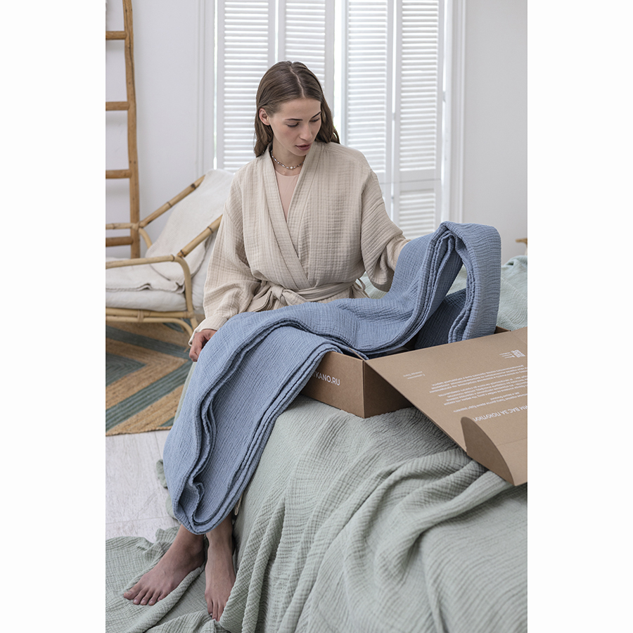 Покрывало двухсторонее из многослойного муслина джинсово-синего цвета из коллекции Essential сделает интерьер спальни уютным и подарит чувство комфорта при использовании. Легкий, дышащий материал на основе экологичного хлопкового волокна приятный на ощупь, хорошо впитывает влагу, не электризуется и не вызывает аллергию. За счет специального переплетения нитей в каждом из четырех слоев ткань имеет интересную фактуру, обладает высокой плотностью, устойчивостью к износу, не скатывается и хорошо держит форму. Элегантная простота муслинового покрывала позволяет вписать его в различные стилевые решения интерьера: сканди, кантри, прованс, эклектика, бохо, эко, минимализм и другие.