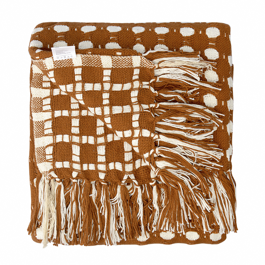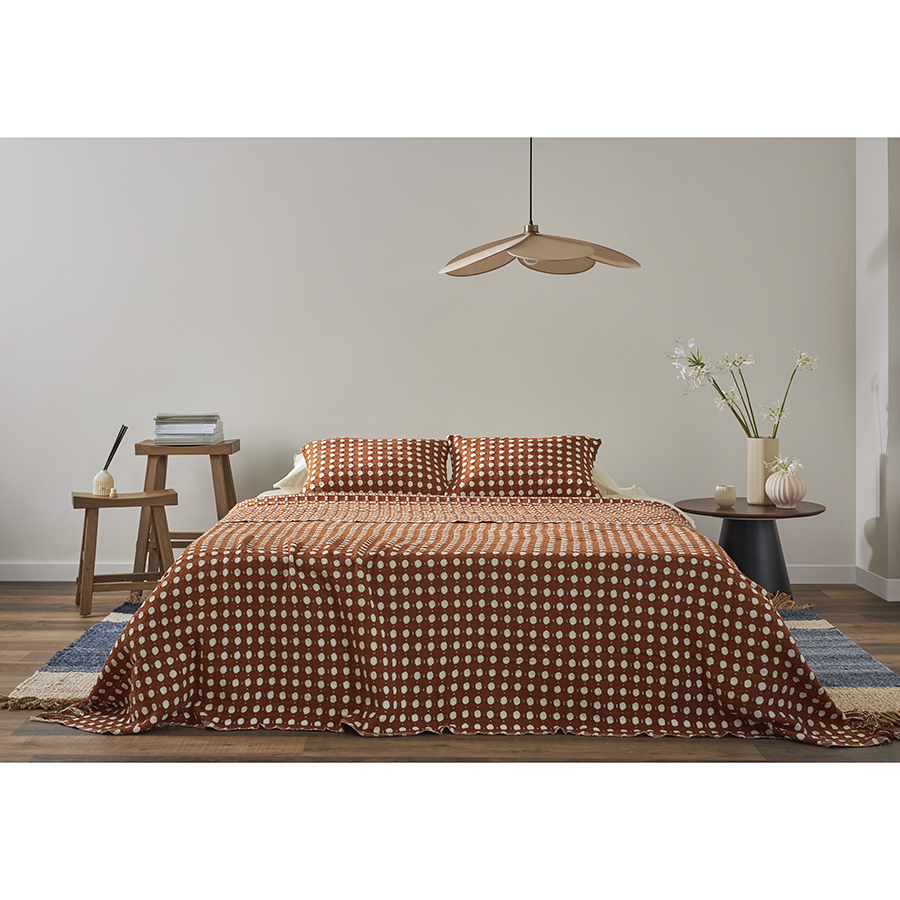 Покрывало из хлопка Polka dots из коллекции Essential поможет создать атмосферу уюта и комфорта в вашем доме. Текстиль теплого карамельного оттенка с классическим узором добавит стильный акцент в оформление любой комнаты и отлично впишется в различные дизайнерские решения.