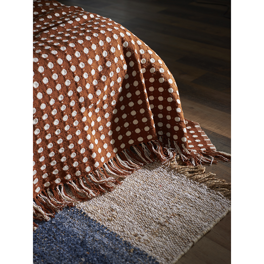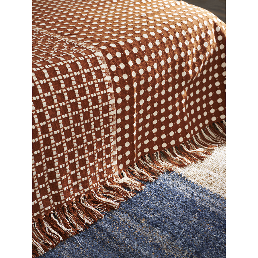 Покрывало из хлопка Polka dots из коллекции Essential поможет создать атмосферу уюта и комфорта в вашем доме. Текстиль теплого карамельного оттенка с классическим узором добавит стильный акцент в оформление любой комнаты и отлично впишется в различные дизайнерские решения.