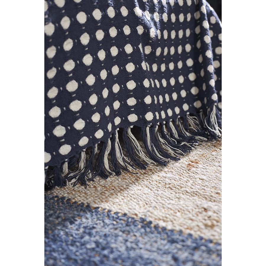 Покрывало из хлопка Polka dots из коллекции Essential станет источником уюта и комфорта в вашем доме. Текстиль темно-синего оттенка с классическим узором добавит стильный акцент в оформление любой комнаты и отлично впишется в различные дизайнерские решения.