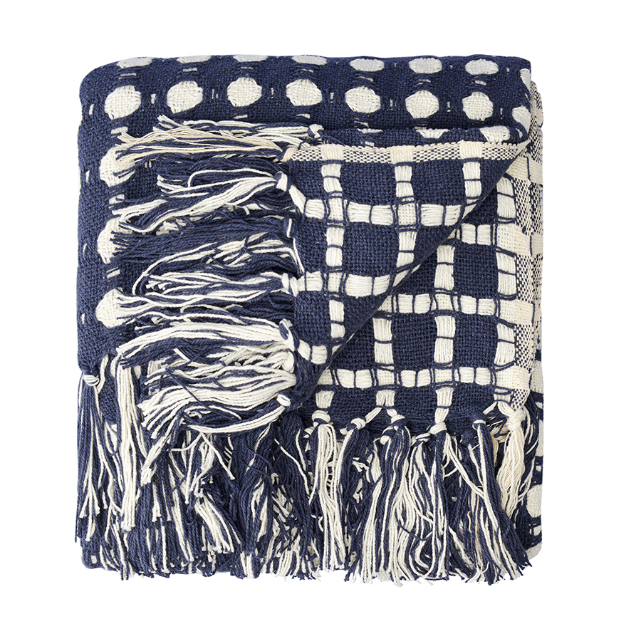 Покрывало из хлопка Polka dots из коллекции Essential станет источником уюта и комфорта в вашем доме. Текстиль темно-синего оттенка с классическим узором добавит стильный акцент в оформление любой комнаты и отлично впишется в различные дизайнерские решения.