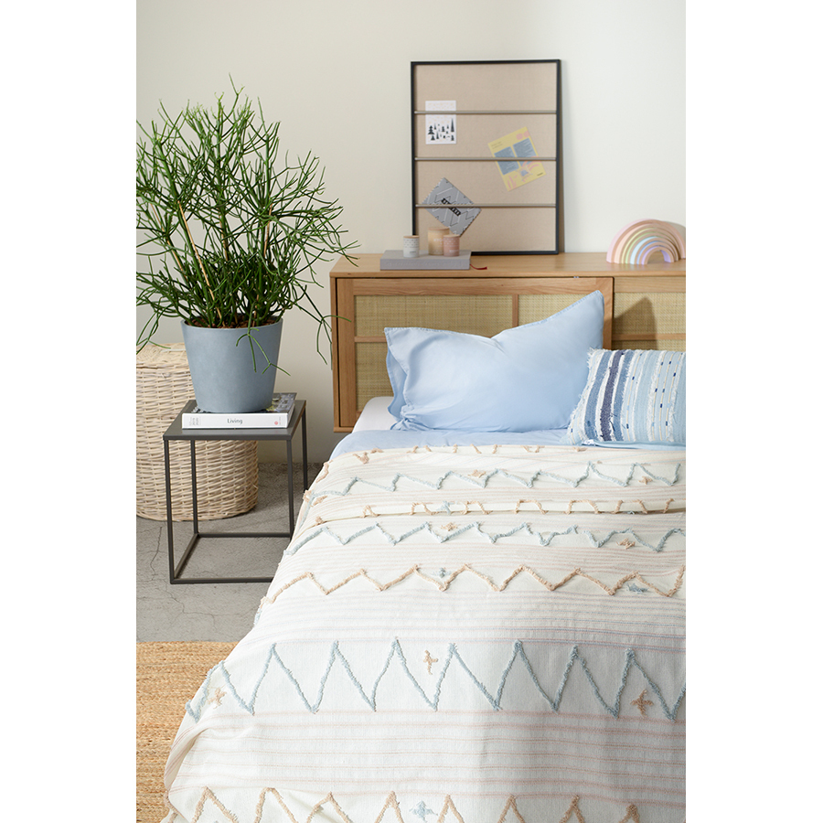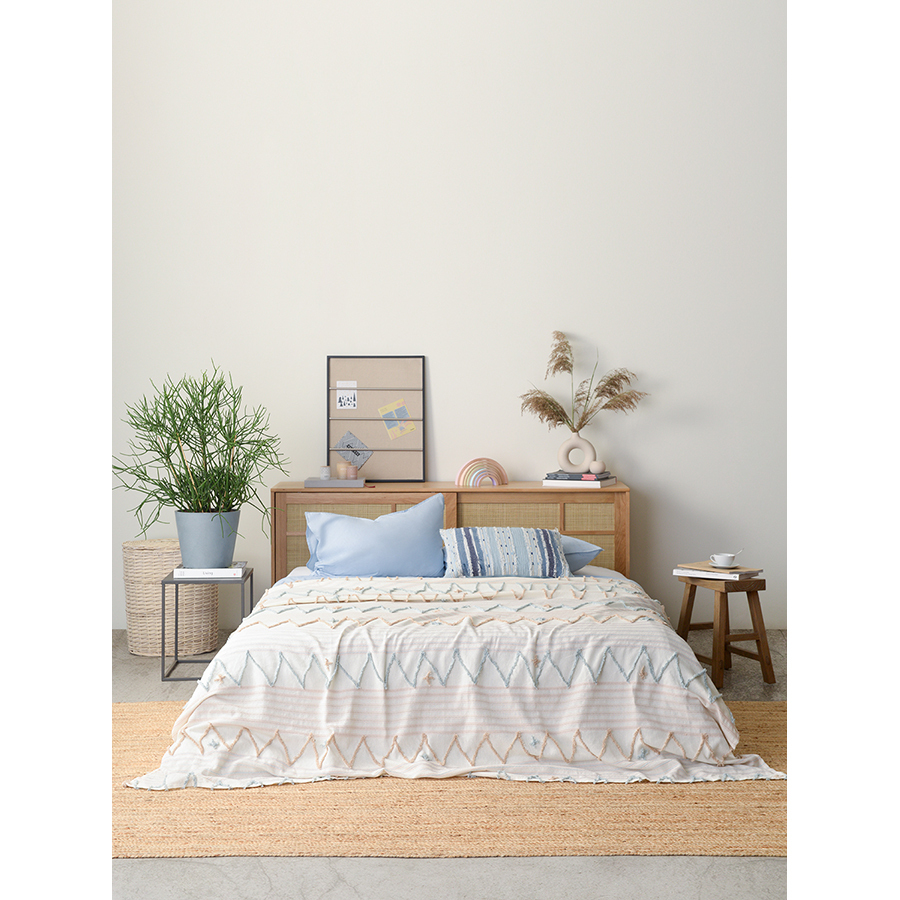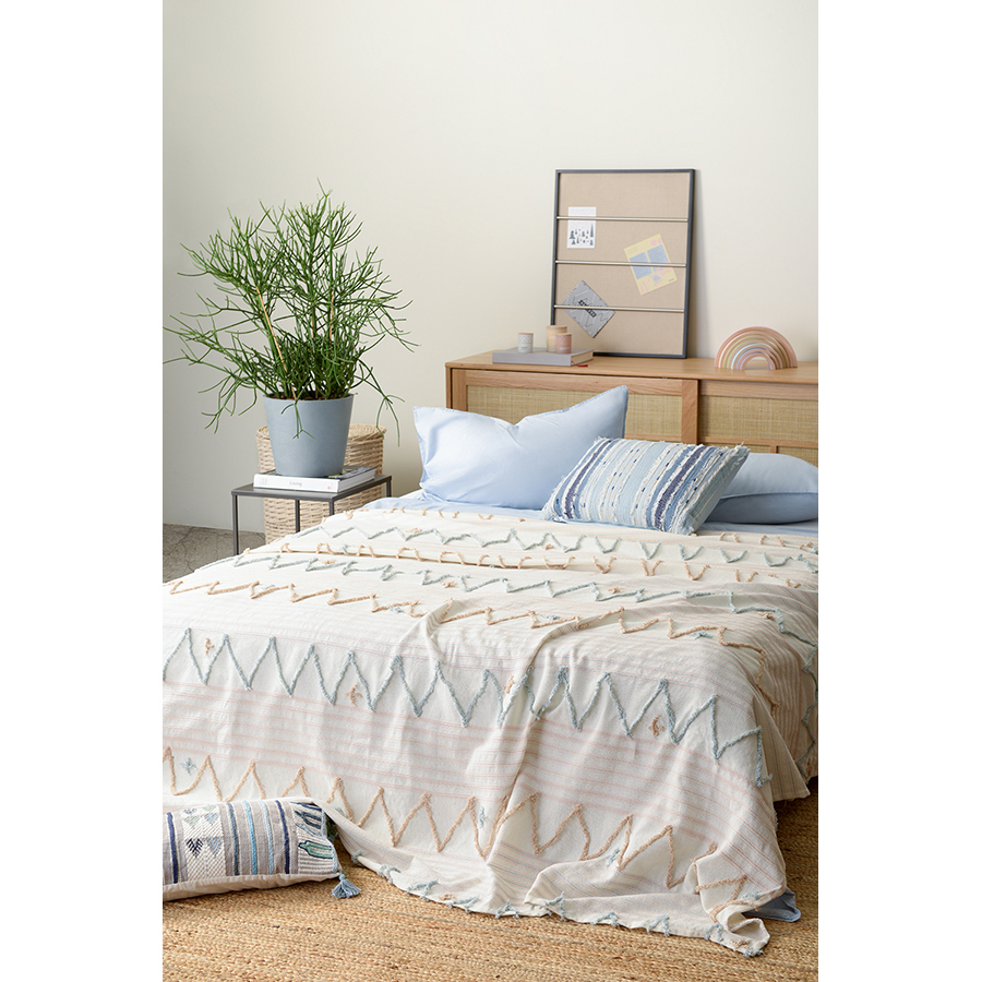 Хлопковое покрывало из коллекции Ethnic привнесет в интерьер колоритные нотки этники, ощущение комфорта и уюта. Пастельные оттенки сделают пространство спальни или гостиной более гармоничным и помогут в создании легкой, непринужденной атмосферы.