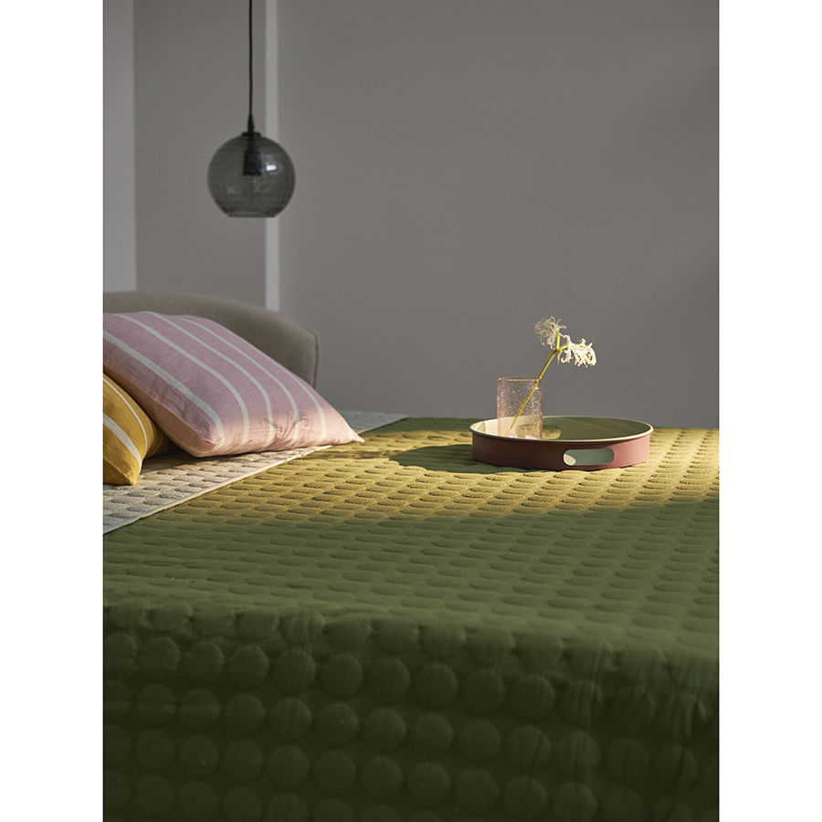Покрывало стеганое Solid dots оливкового цвета из коллекции Essential станет не только эффектным элементом декора вашей спальни, но и практичным решением для повседневного использования.