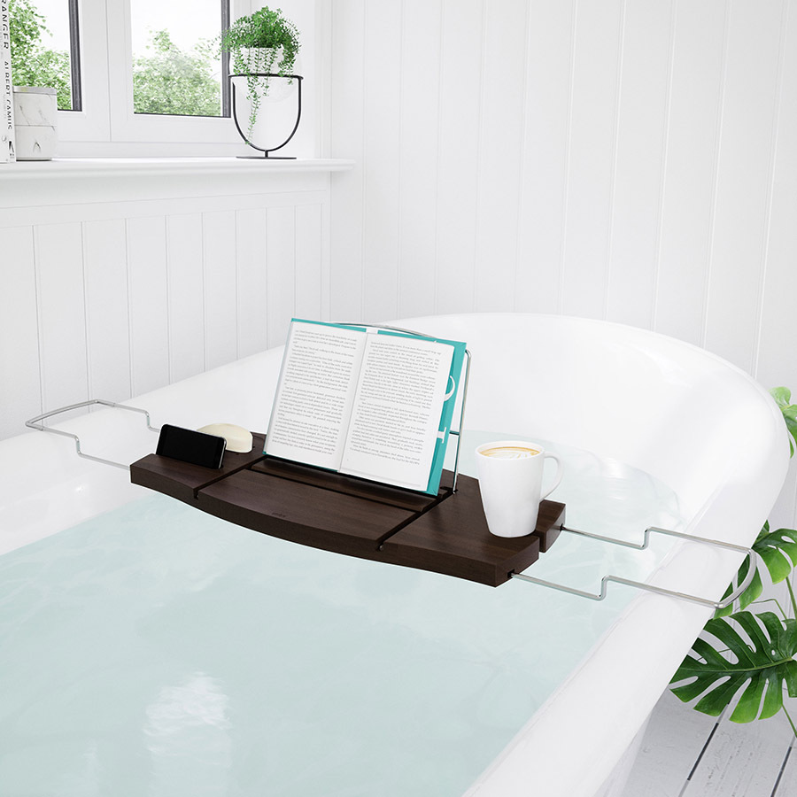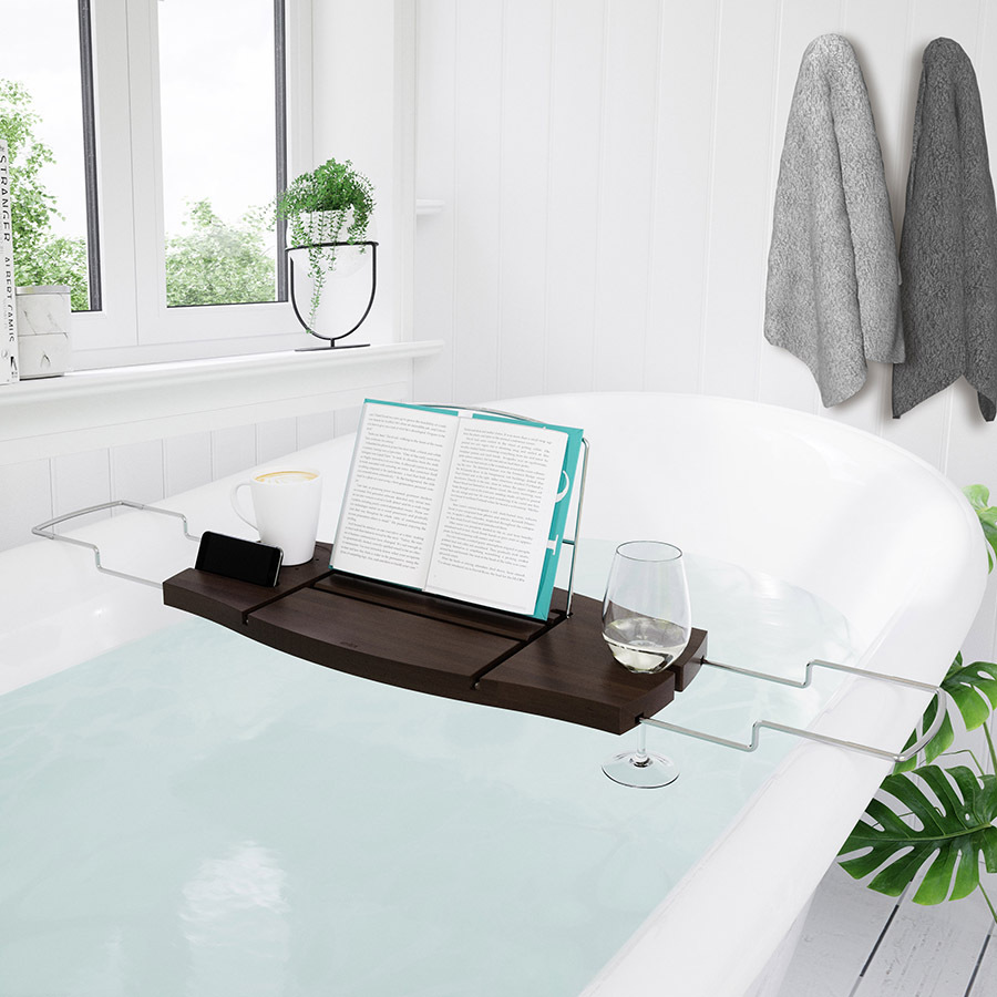 Полка для ванной позволит расслабиться после рабочего дня в компании любимого сериала или книги.