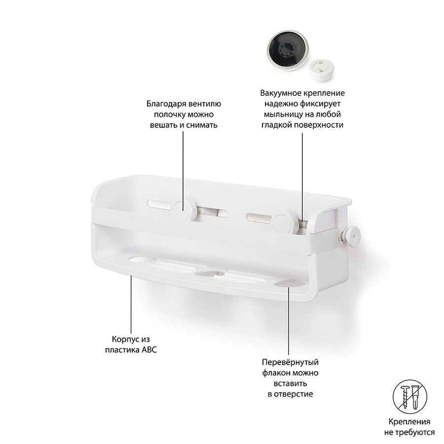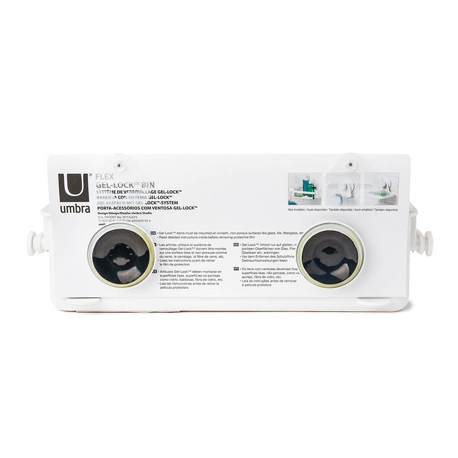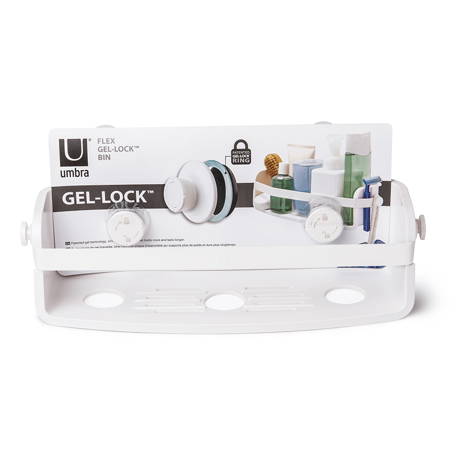 Дополнительное место для хранения в душе не бывает лишним. Особенно, если это место будет всегда перед глазами. Компактная полочка для душа Flex, куда поместится всё самое необходимое: мыло, бутылочки с гелем для душа и шампунем и мочалка, крепится к стене на две специально разработанные присоски с запатентованной технологией Gel-Lock™. Крепления прочно удерживаются на плитке, стекле и других гладких поверхностях. В полочке предусмотрено отверстие, чтобы перевернув пузырек вверх ногами, вы использовали его как диспенсер. Благодаря эластичным перемычкам удержит даже самые большие бутылки с гелями и шампунями. Отверстия в полочке не дадут воде застаиваться. Максимальная нагрузка – 3,4 кг. Дизайнер Umbra Studio