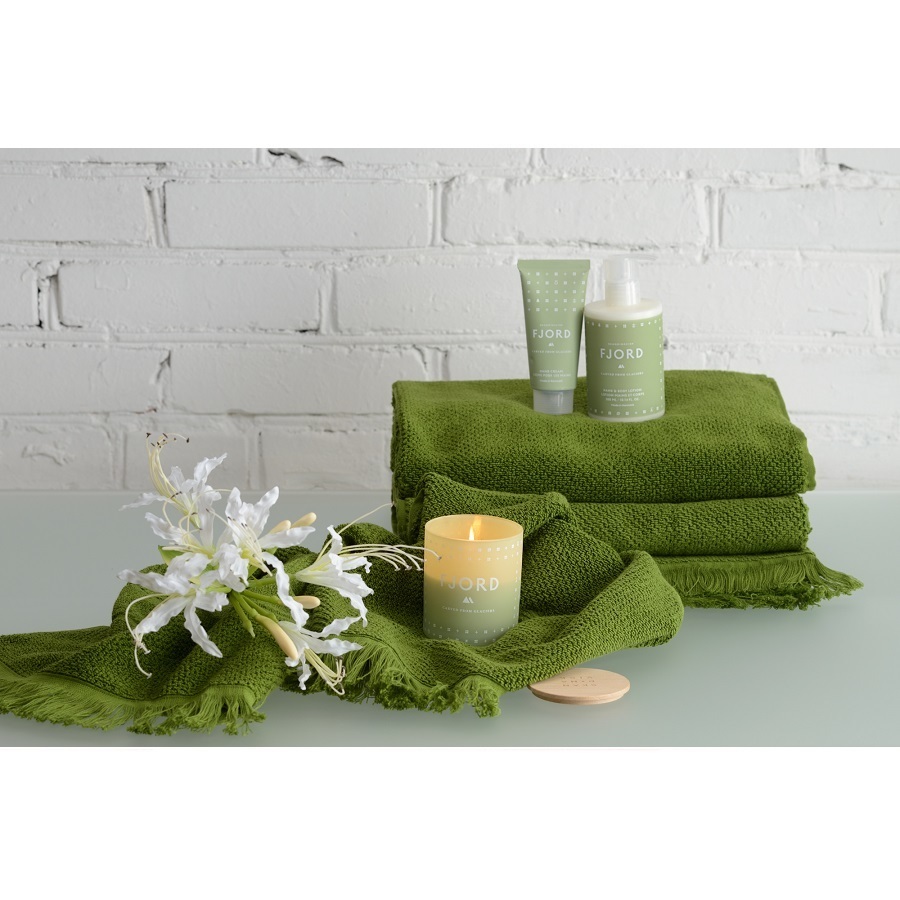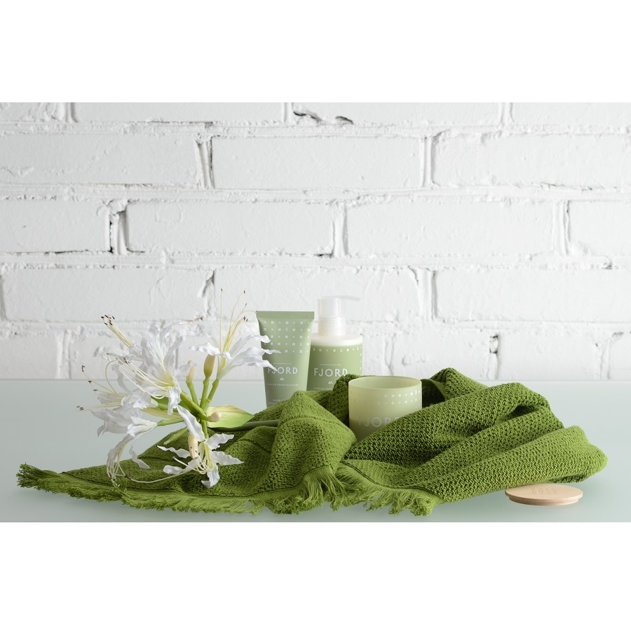 Полотенце линии Essential украшено фактурным узором и мягкой бахромой в тон. За счет такого дизайна аксессуар органично подчеркнет любой интерьер ванной комнаты. Изделие станет отличной находкой для тех, кто любит качественные банные принадлежности из натуральных тканей. Ровная прочная пряжа изготавливается из лучших сортов длинноволокнистого хлопка методом тщательного прочесывания материала, что значительно улучшает ее качественные характеристики. Полотенце быстро впитывает влагу, оставляя приятное ощущение свежести и чистоты. Изделие отличается особенной износостойкостью: оно хорошо держит форму и сохраняет впитывающие свойства на протяжении долгого времени. Плотность ткани - 514GSM. Размер: 70х140 см ! Максимальная температура стирки 40° C ! Гладить при максимальной температуре 110° C ! Барабанная сушка запрещена ! Не отбеливать ! Сухая чистка запрещена